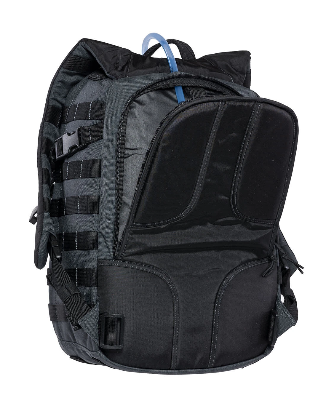Der kleine Rush12 2.0 ist mit seinen 24 Litern Volumen zwar ein Leichtgewicht, trotzdem ist guter Tragekomfort wichtig. 5.11 Tactical setzt bei dem Daypack, der aus dem wasserdichten CORDURA 1050 den gefertigt wird, auf gepolsterte Tragegurte, die zur Stabilisierung mit einem Brustgurt verbunden werden können. Das anatomisch gepolsterte Rückenteil des Rucksacks sorgt dafür, dass ungünstig verpackte Ecken und Kanten nicht in den Rücken drücken. Wird ein Notebook in das Laptopfach auf der Rückseite des Hauptfachs eingeschoben, verändert sich die Rückenpartie also nicht, stabilisiert aber sehr wohl den Computer. Ein Trinksystem-Fach mit dem Schlauchausgang nach hinten ist ein taktisches Must-Have selbst für kleine Hikes oder Einsätze.