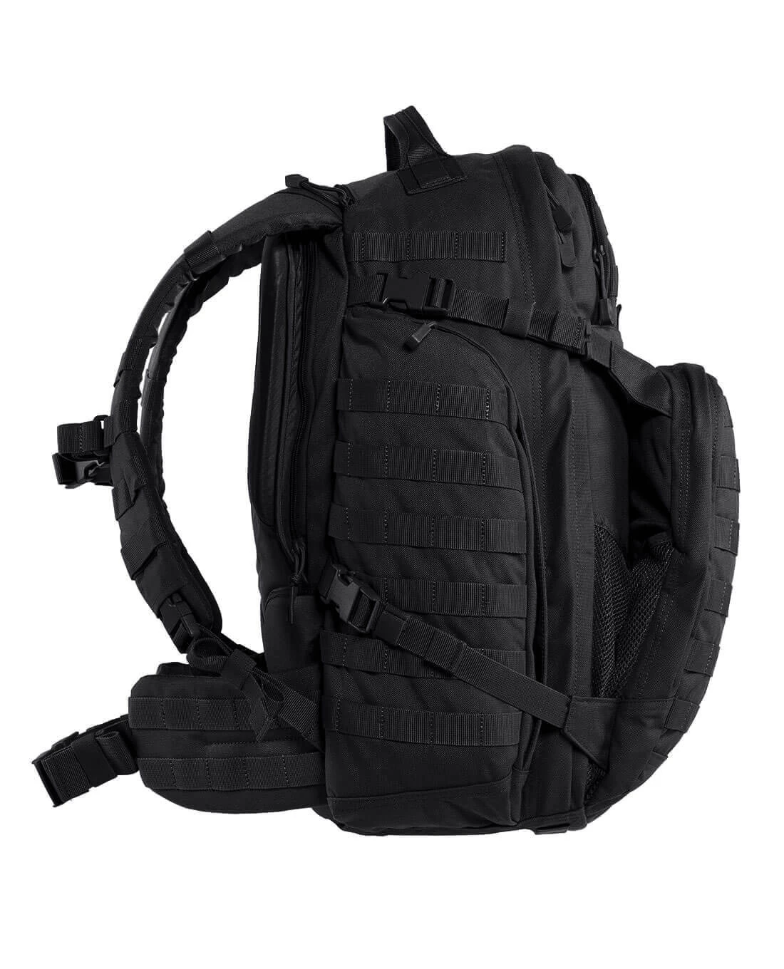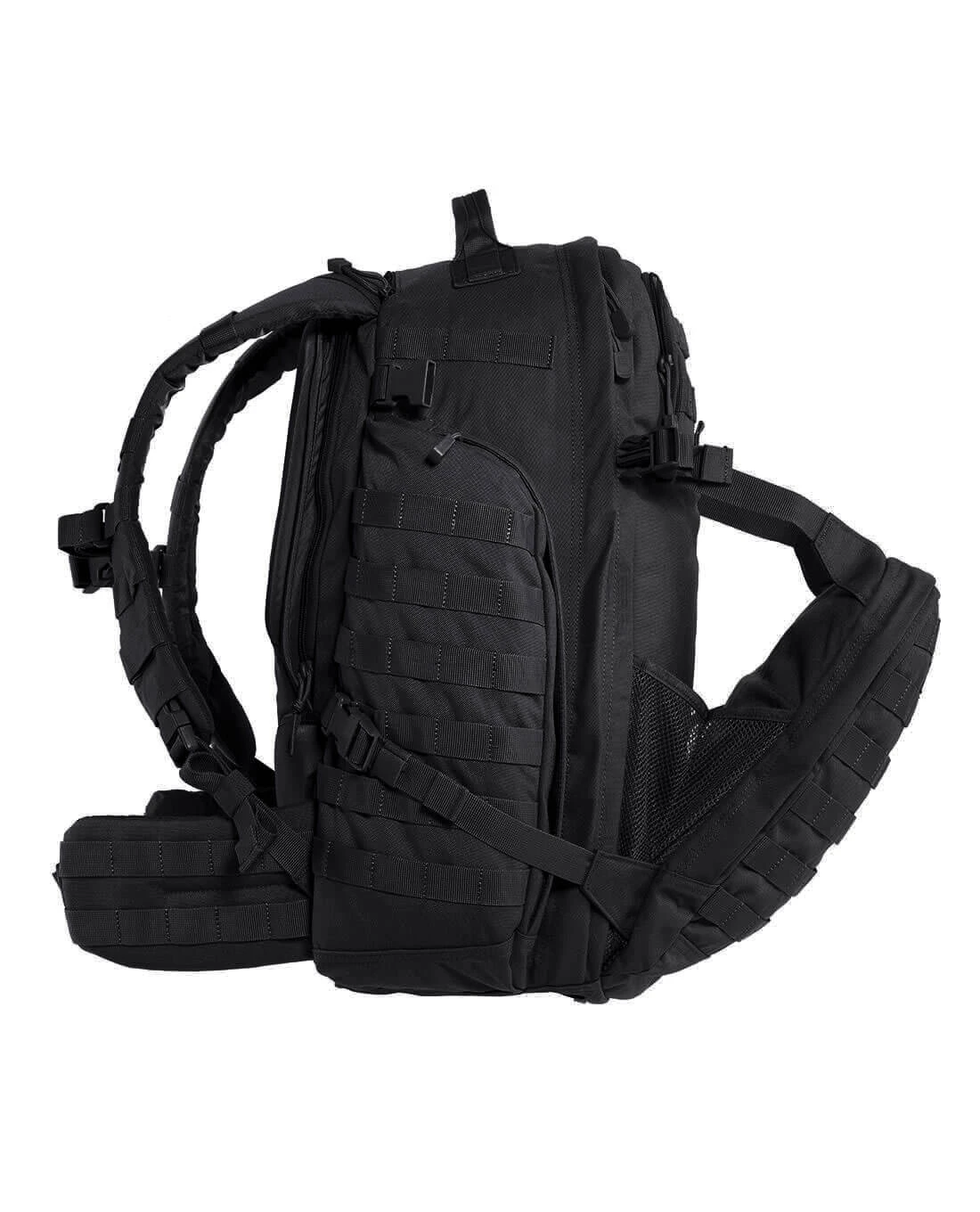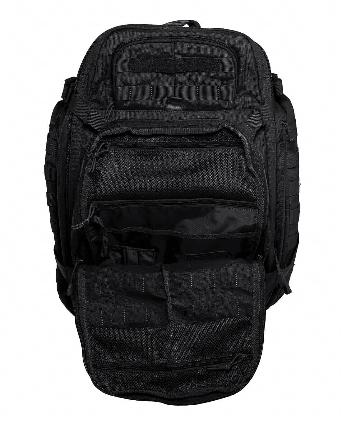Im taktischen Sinne der Modularität verläuft das M.O.L.L.E.-System um die gesamte Oberfläche des Rucksacks. Sowohl die Fronttasche, als auch die Seitentasche sind mit M.O.L.L.E.-Schlaufen überzogen. Damit ist nicht nur eine Unmenge an weiteren Attachments und Möglichkeiten zur Erweiterung gegeben, sondern auch der signature look von 5.11 Rucksäcken umgesetzt: Das typische Centre-Line Design, das die M.O.L.L.E.-Streifen in der Mitte zusammenführt, gliedert den Rucksack optisch und gibt ihm seinen taktischen Drive.