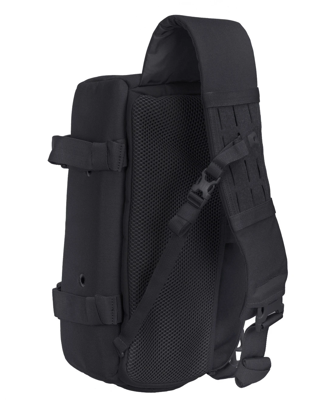 aus Laser-Cut-MOLLE über die gesamte Front. Der breite Schulterriemen ist gepolstert und kann zusätzlich u?ber einen Sicherungsriemen fixiert werden.