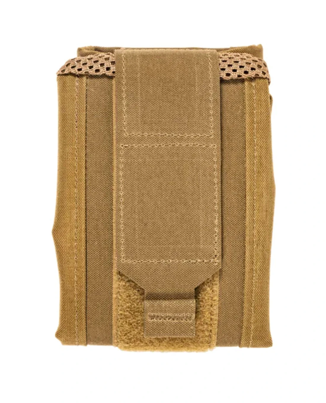 Der Hauptteil des Abwurfsacks ist aus beschichtetem 560 den Cordura gefertigt. Die großzügige Öffnung mit 19cm Durchmesser ist mit einem elastischen Kordelzug verstellbar. Im Rand ist eine Verstärkung eingenäht, die den Abwurfsack zuverlässig offenhält. Um den Platz am Battle Belt optimal zu nutzen, ist durch die M.O.L.L.E. Fläche im Inneren Platz für zusätzliche M.O.L.L.E.-Magazintaschen gewährleistet. Der Boden des Beutels ist aus Netz und lässt somit Wasser und Sand zuverlässig nach außen. Der Abwurfsack lässt sich kompakt zusammenfalten und mit einer Klett-Flappe sichern. Zur Adaption an die taktische Ausrüstung ist die Tasche auf der Rückseite mit PALS+ ausgestattet, was die Montage an unterschiedlich hohen M.O.L.L.E. Flächen erleichtert.