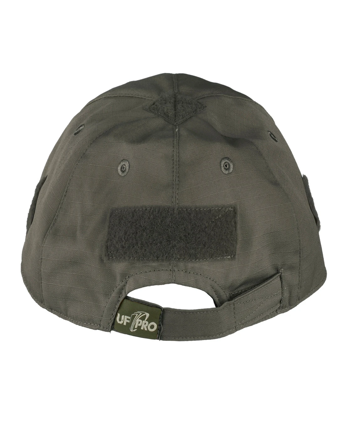 Die UF PRO Base Cap in Steingrau-Oliv wird zu 100% aus Baumwolle gefertigt, besitzt 5 verschiedene Flauschklettflächen für Einheit und IR Kennzeichnungen. und lässt sich dank des Klettverschlusses individuell an die Kopfgröße anpassen.