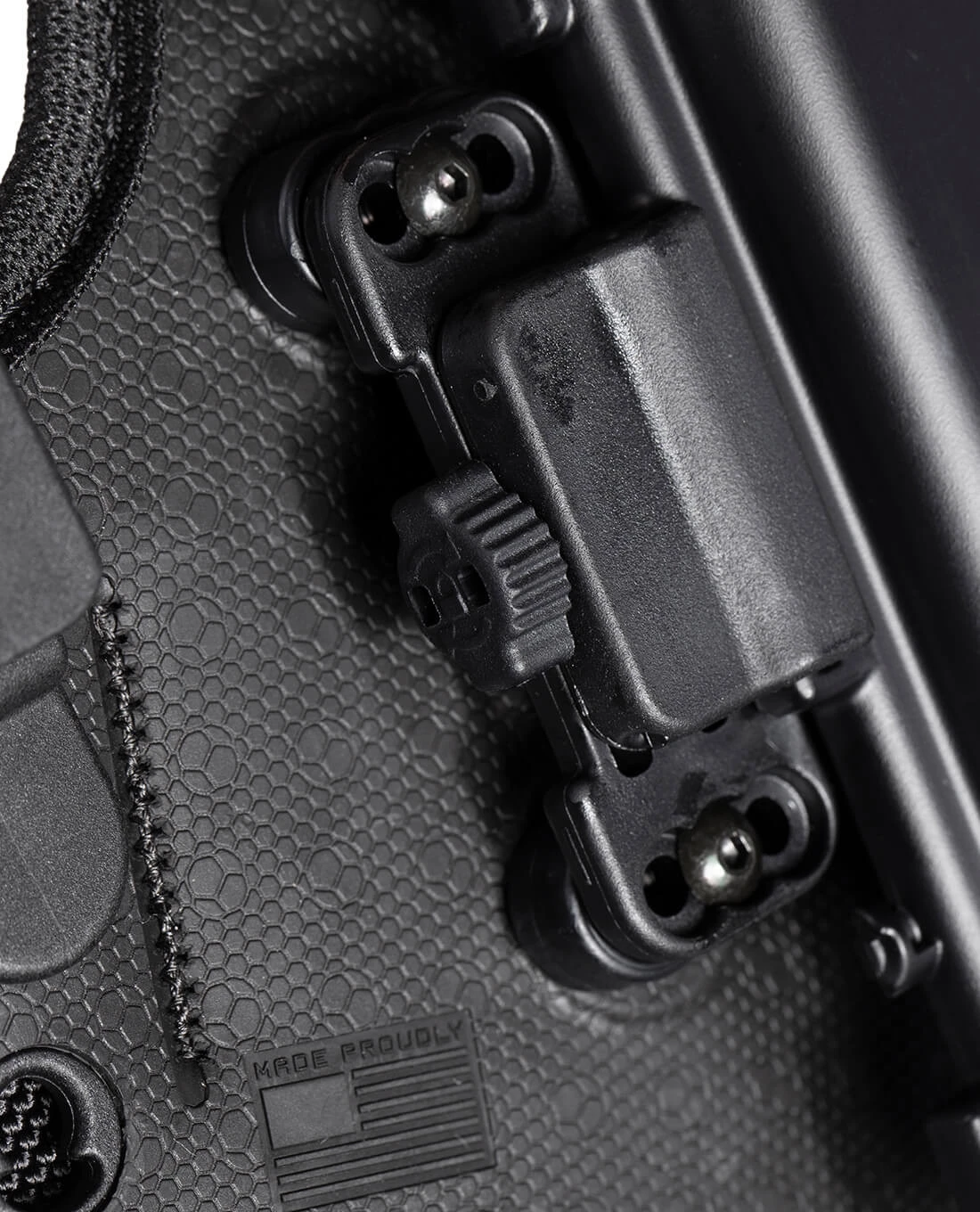 Für Low Profile Einsätze ist das ShapeShift IWB Holster optimal geeignet. Ein Edelstahlkern gibt dem Holster strukturellen Halt, während eine weiche CoolVent-Neoprenbasis für den notwendigen Komfort sorgt. Die Schale des modularen Holsters lässt sich mit einem einzigen Befestigungspunkt mit der Basis verheiraten, wodurch unangenehmer Druck vermieden wird und es sich optimal an den Körper schmiegt.