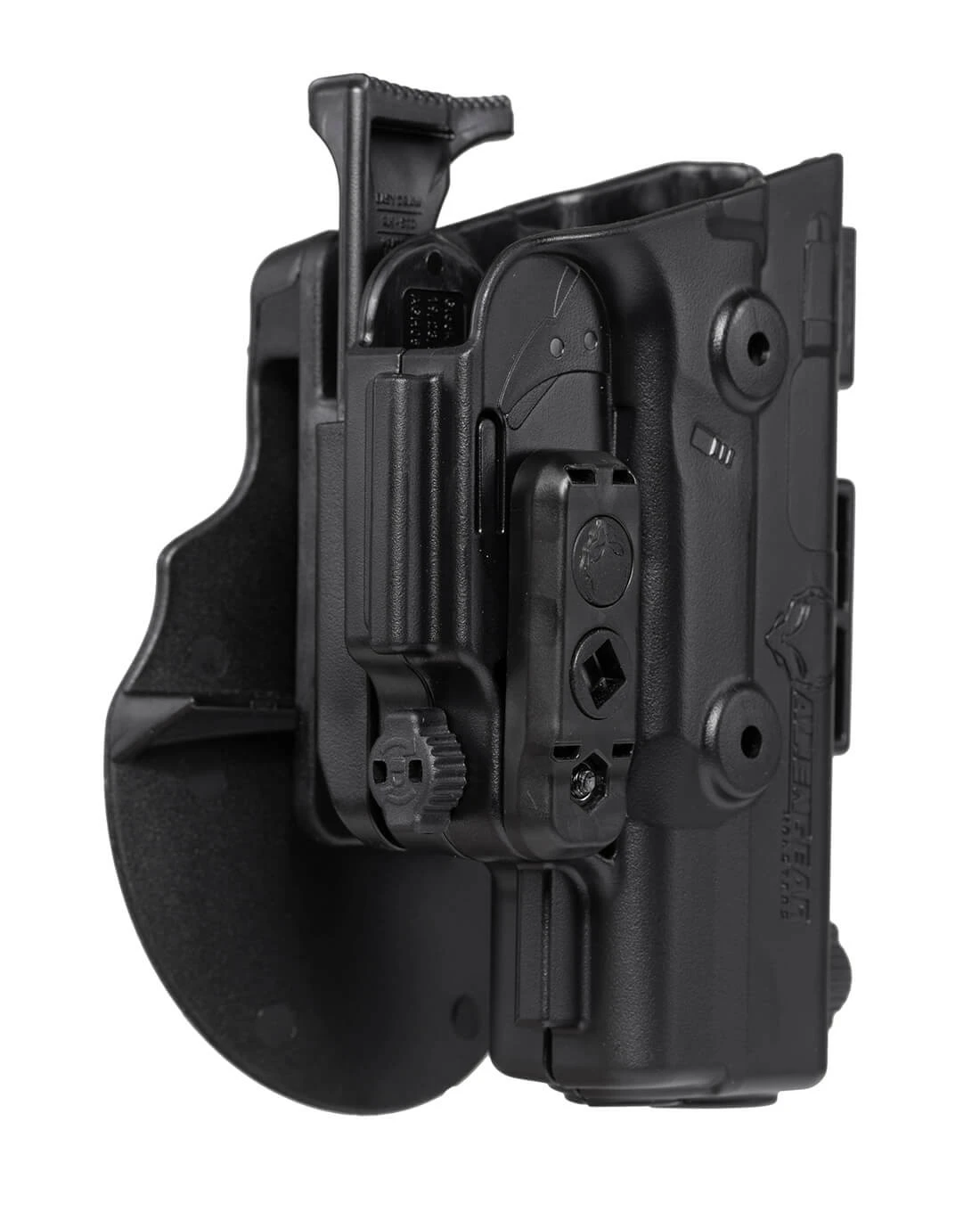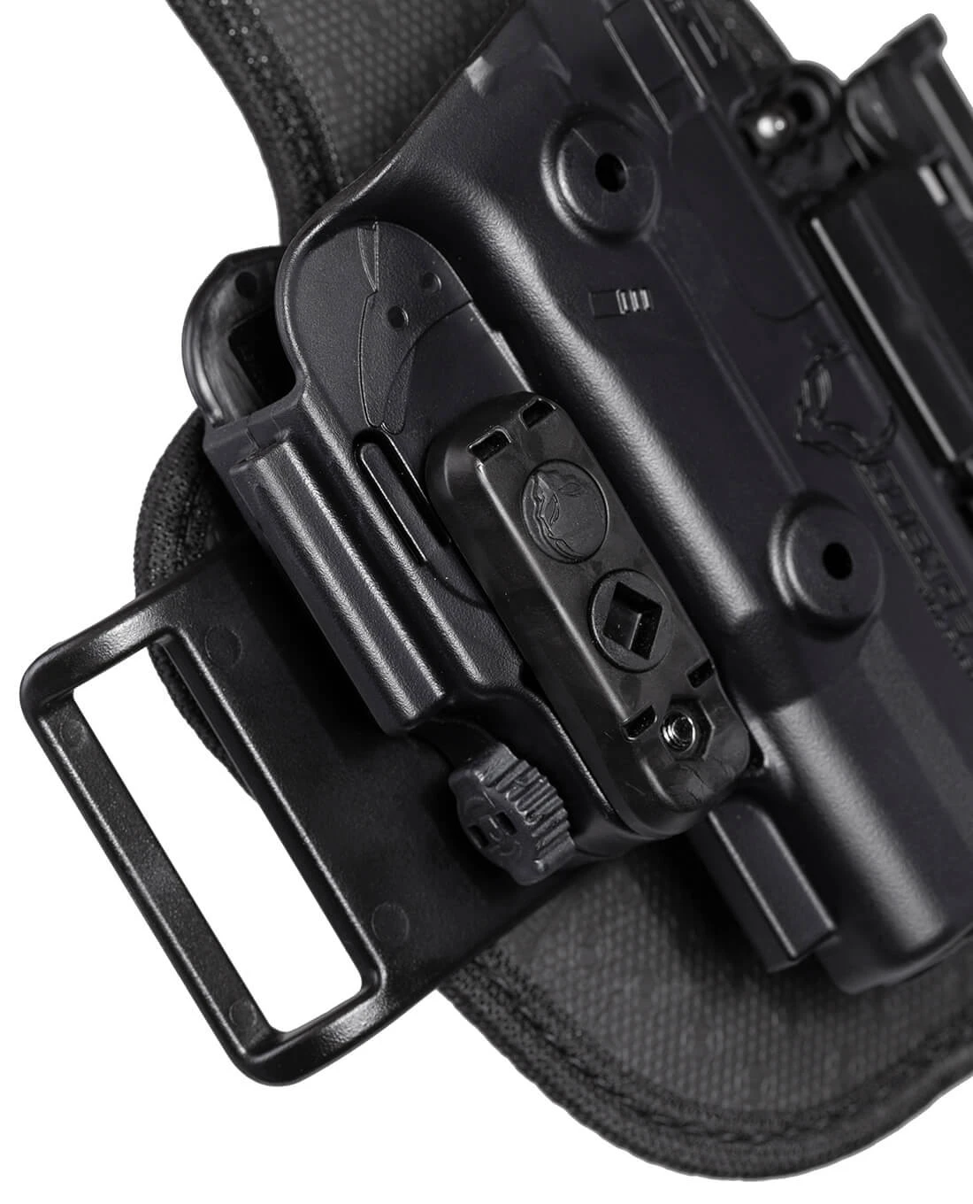 Das ShapeShift OWB-Paddleholster ist die nächste Evolution des Führens einer Schusswaffe außerhalb des Hosenbunds. Mit seinem anpassbaren Design kann dieses modulare Holster mit aktiver Sicherung und/oder einstellbarem, passivem Zugwiderstand oder beidem ausgestattet werden. Ein ergonomische Daumensicherung, der in jedem Core Carry Pack enthalten ist, gibt Ihnen die Möglichkeit, das Holster mit aktiver Sicherung zu tragen. Dank der einstellbaren Retention-Einheit können Sie den passiven Zugwiderstand in Sekundenschnelle anpassen. Um den perfekten Zugwinkel zu erreichen, ist das ShapeShift OWB Paddleholster mit einer einstellbaren 360-Grad-Neigung ausgestattet und kann in 12-Grad-Schritten eingestellt werden.