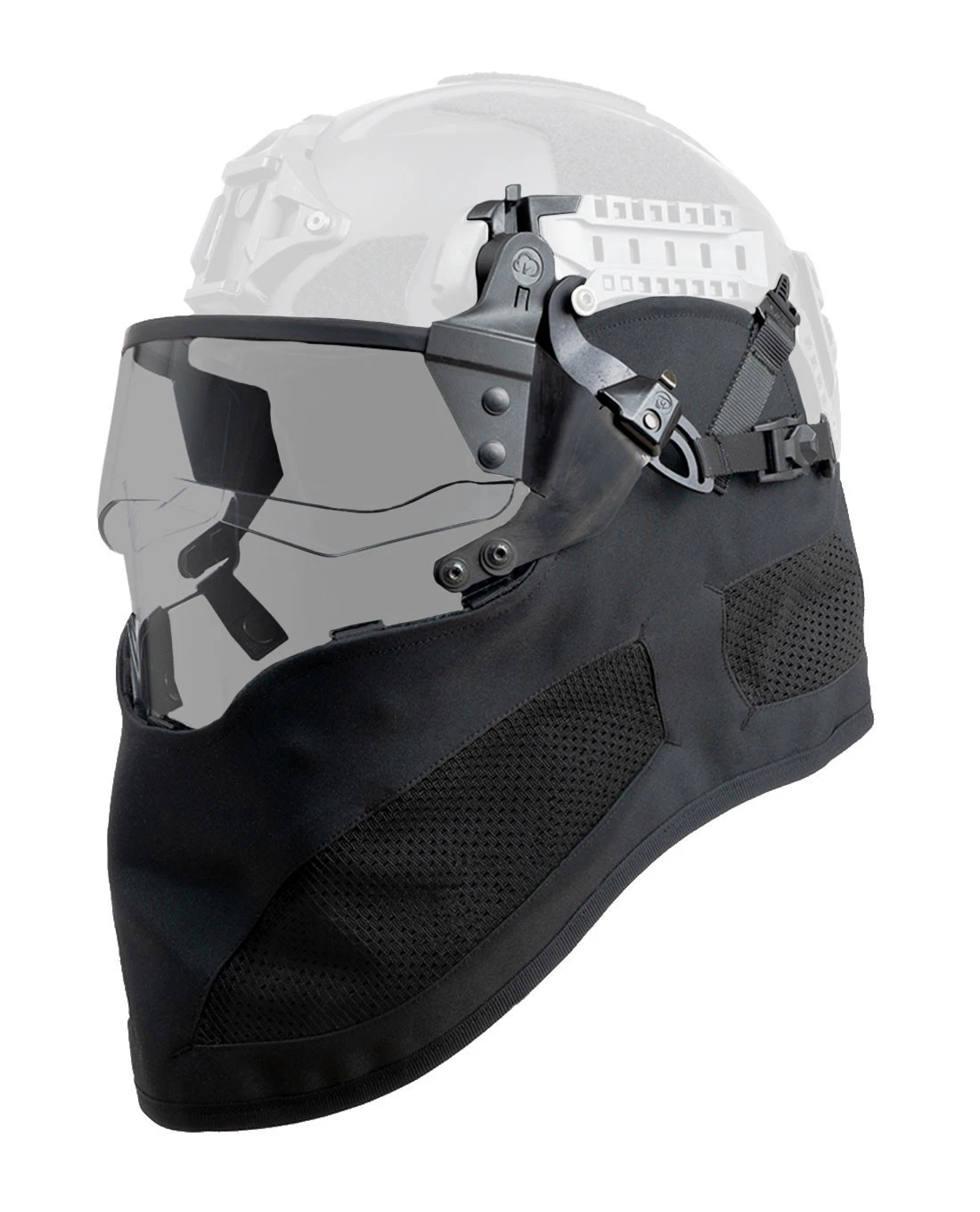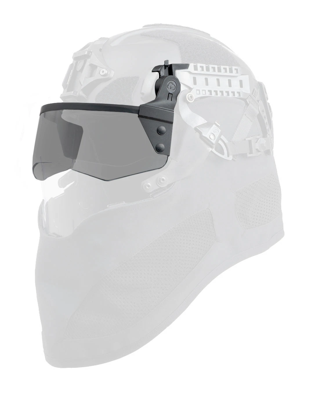 So direkt wie die Kompatibilität, so modular und einfach ist die Verwendung des Kits: Dank des modularen Designs und des leichten Gewichts aller Einzelteile können alle Elemente individuell verwendet und ohne Werkzeug montiert werden. Im Kit enthalten sind das CTV Visier, 2 CRH-2 Seitenarme, CTM-1 Mandible / Kieferschutz und CTM-1 Kragen.