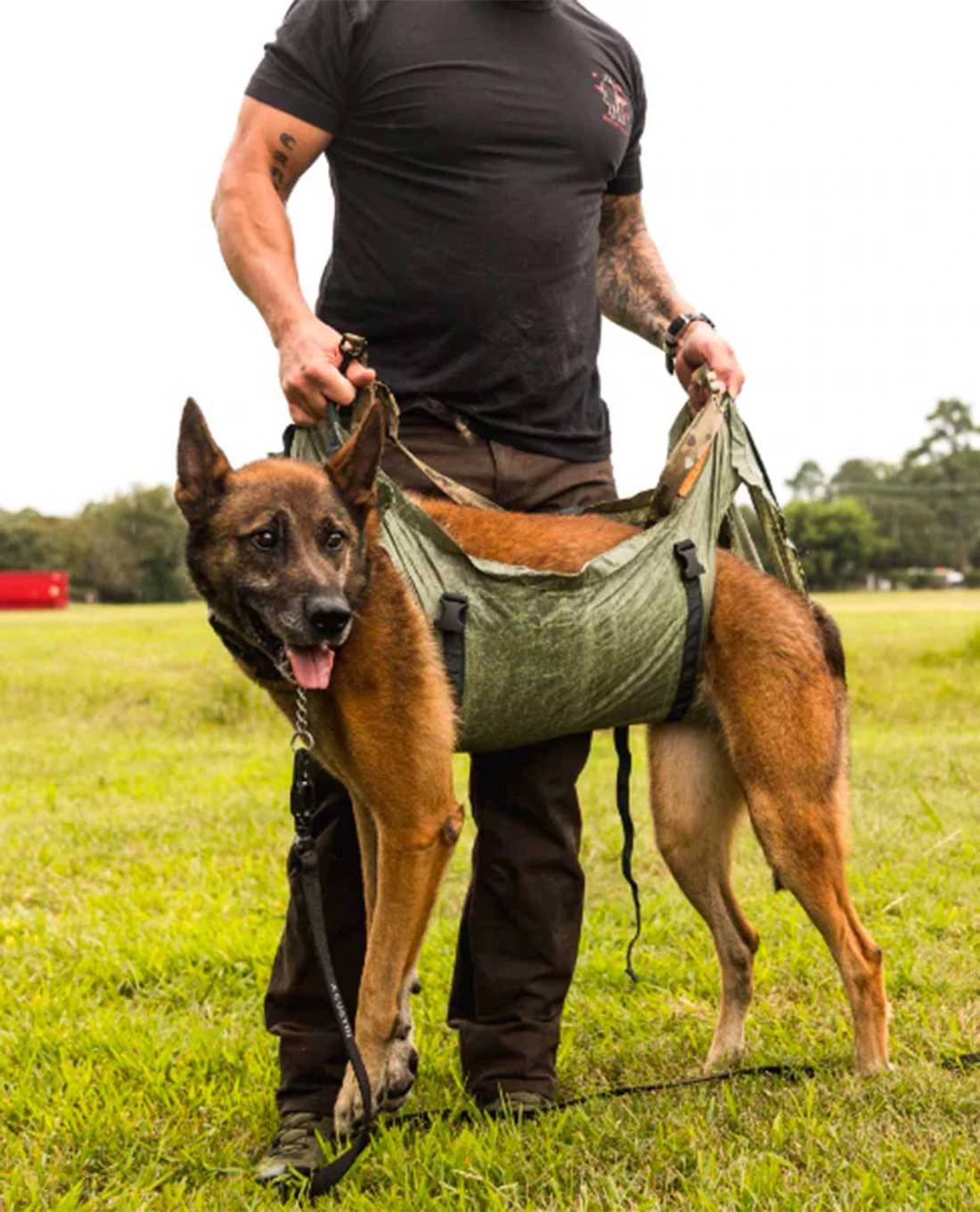 Mit dem MATBOCK Dog LIFT Stretcher lassen sich Diensthunde blitzschnell evakuieren. Aus robustem MATBOCK Ghost Heavy Material gefertigt, können die Fellraketen mit dieser Rettungstrage schnell und unkompliziert aus der Gefahrenzone transportiert werden.