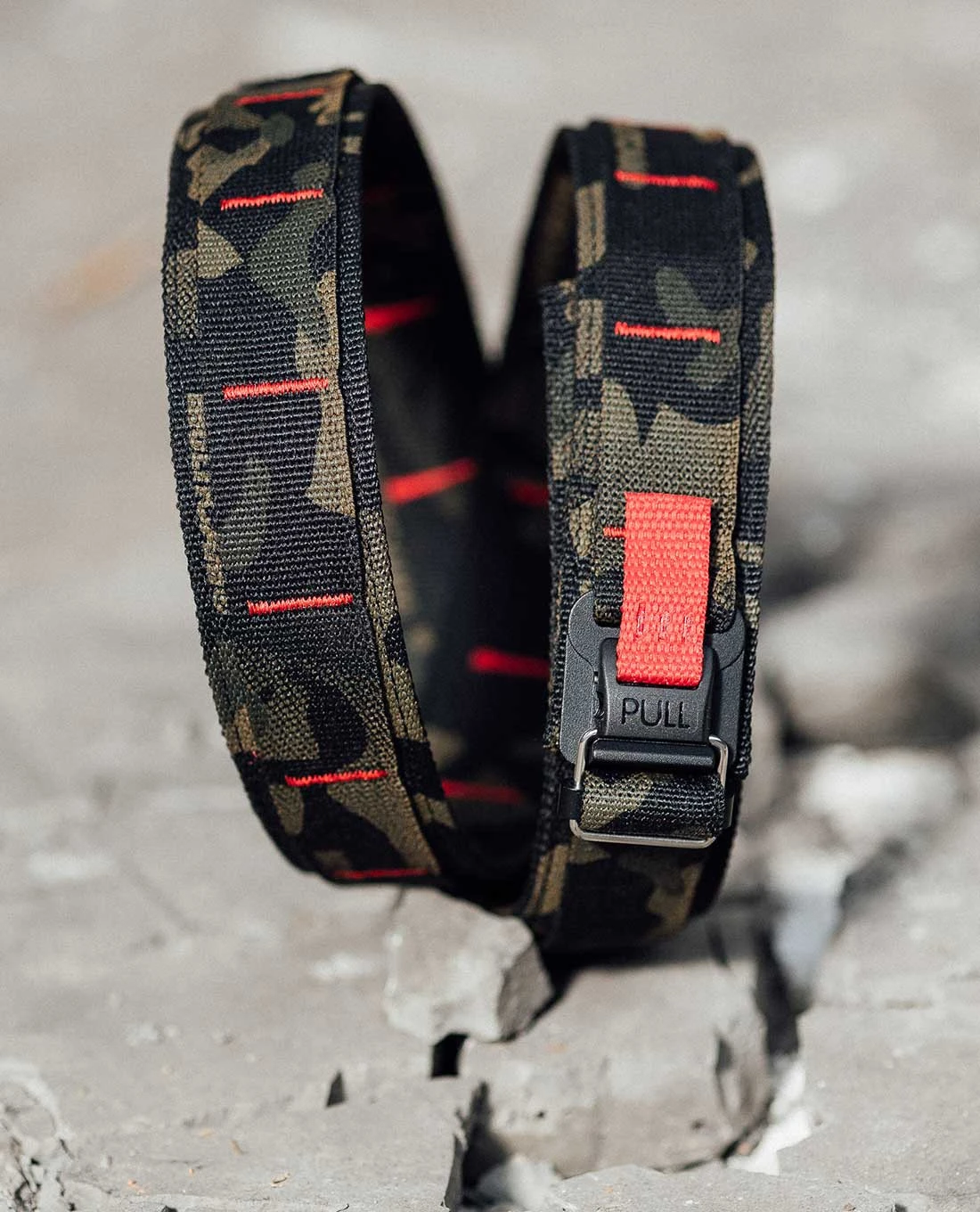 Mit dem EDC Belt Multicam Black revolutioniert md-textil die Basis des täglichen Loadouts. Von Oggelshausen bis Gotham City – dieser Gürtel hält, was er verspricht und dazu mehr, als bloß die Hose oben! Der düstere Leibriemen im Blood Moon Design bietet neben alltagstauglichen Maßen für taktische Jeans und Urban Pants, einen hochfunktionalen FIDLOCK-Verschluss aus belastbarem Aluminium und volle M.O.L.L.E.-Kompatibilität für Mag-Pouches und zugriffsbereite Trauma Kits.
