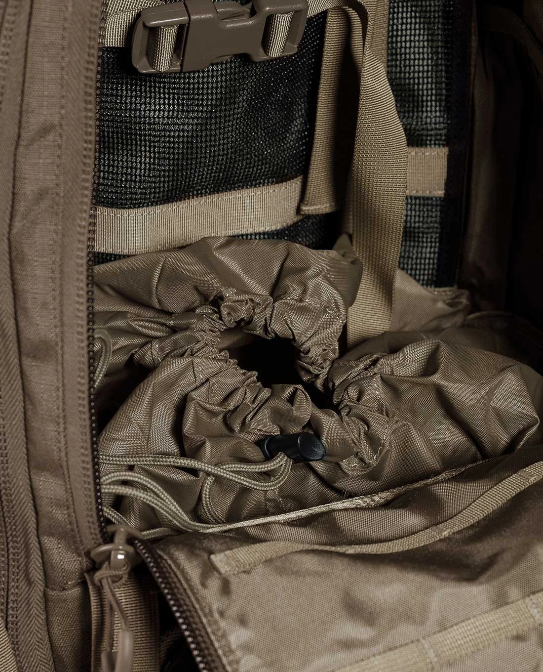 Mit dem Waffenschacht im Rücken kann die Waffe nicht nur eng am Körper getragen werden, sondern in Kombination mit dem A4SS Tactical Waffenträger verwendet können auch alle tragbaren Scharfschützengewehre mitgeführt werden. Der Rucksack ist auch mit A1SS, A2SS und A2LS Seitenscheiden kompatibel.