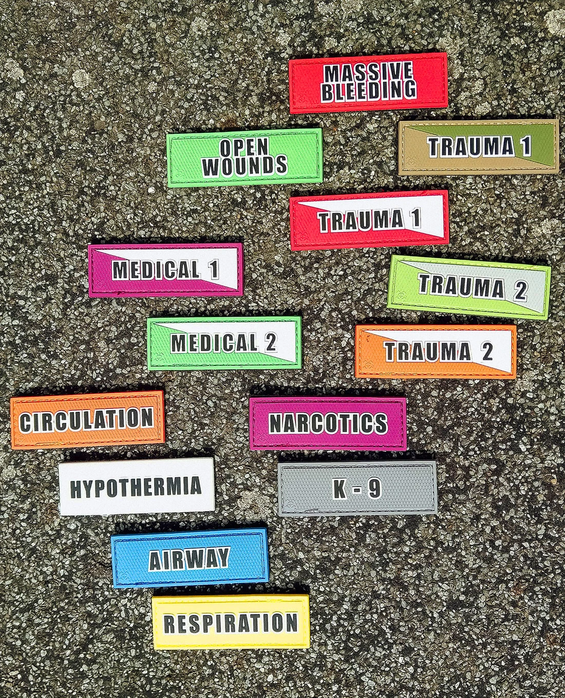 Tactical Responder ist ein Ausbildungsprogramm zur taktischen Notfallversorgung. Die Medical Patches Serie von Tactical Responder dienen zur Kennzeichnung der Sanitätsausrüstung im Einsatz. Die Rückseite der Patches ist mit Kletthaken versehen und kann auf jeder entsprechenden Klettfläche befestigt werden.