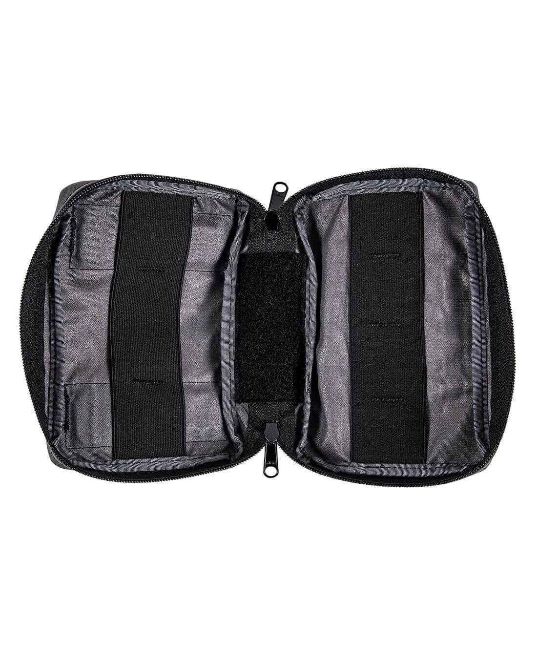 Ein umlaufender Reißverschluss mit 2 Zippern sorgt für uneingeschränkten Zugriff auf den Inhalt und die 10 x 5 cm Flauschklettfläche auf der Front für das Anbringen von Kennzeichnungen, ID und Morale Patches. 50mm Gummibänder auf der Innenseite dienen der praktischen Organisation aller essentiellen Gadgets und machen diese Tasche auch zur idealen EDC Pouch für zivile Abenteuer. Des Weiteren verfügt die Mehrzwecktasche Horizontal über eine Flauschklettfläche zur optionalen Installation einer md-textil Loch-Schlitz Montageplatte.