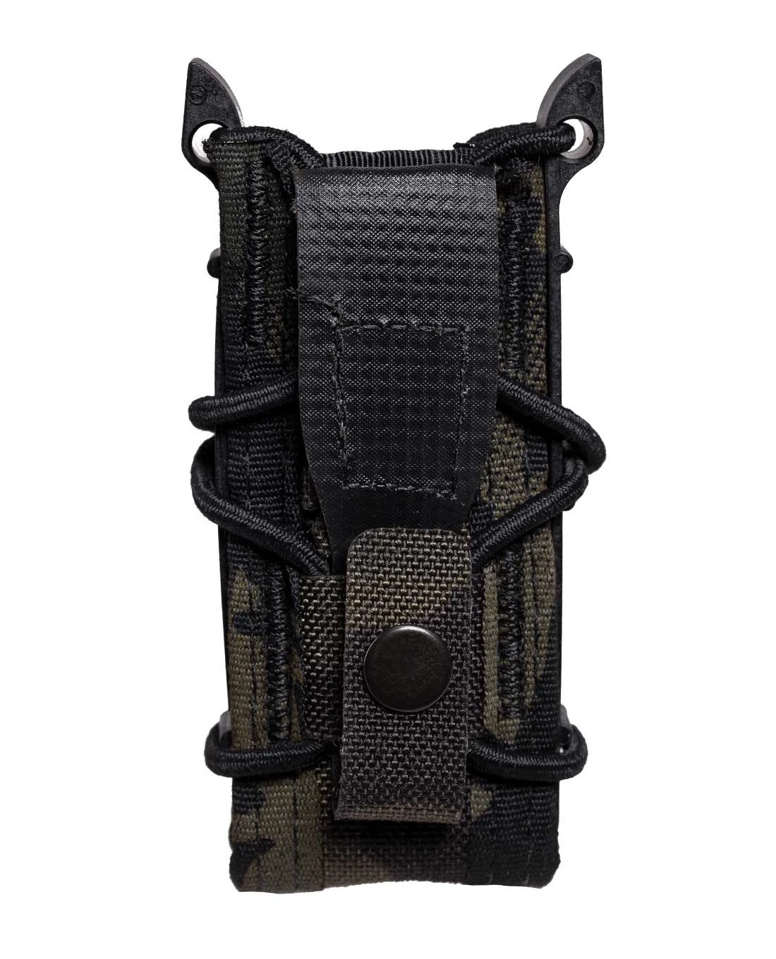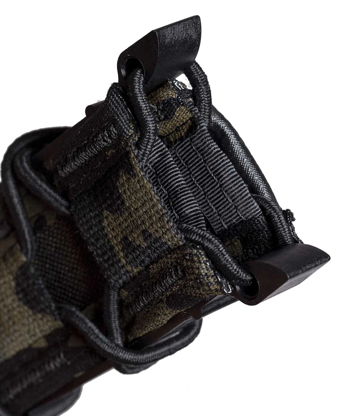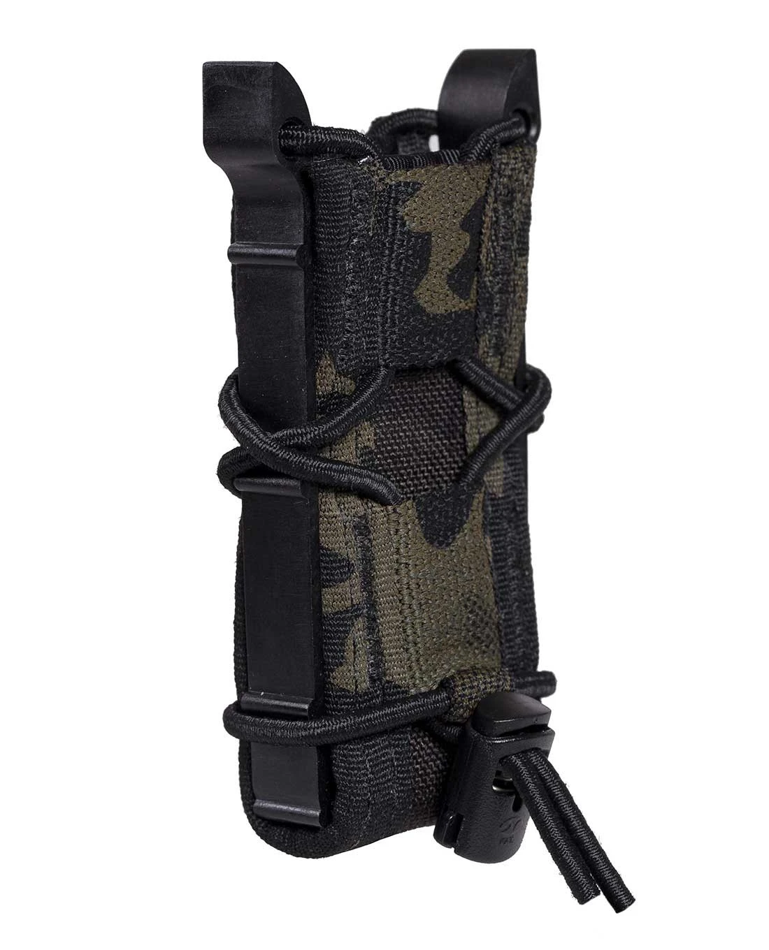 Dank des stabilen 100% Nylon und der flexiblen Einstellbarkeit durch den Gummizug kann eine große Breite an Pistolen-Magazinen aufgenommen werden: 1911, HK 45, M9/Beretta 92, Glock, XD-Magazine werden alle sicher gehalten und bei Bedarf leicht und geräuschlos herausgezogen.