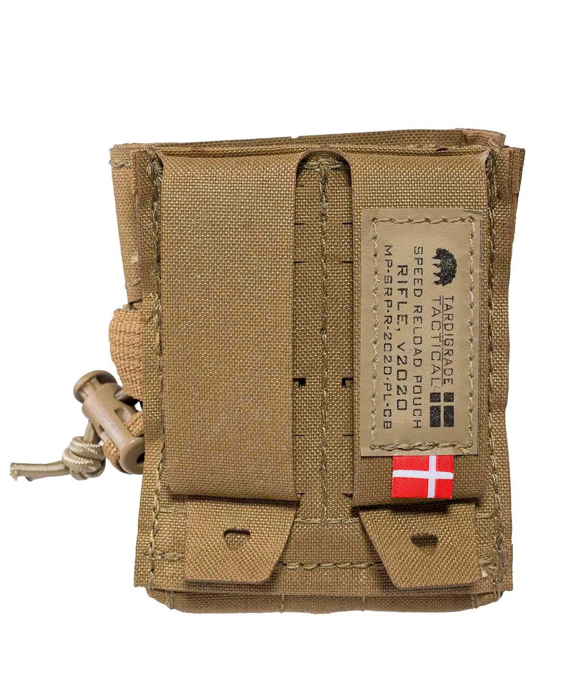 Mit der Speed Reload Pouch, Rifle v2020 hat Tardigrade Tactical auch seine Gewehr-Magazintasche verbessert und vor allem in Sachen Stabilität nachgelegt. Die kleine Mag Pouch, die aus Mil-Spec CORDURA gefertigt wird, vereint einerseits die weichen Eigenschaften des zuverlässigen Nylons, wurde aber an kritischen Stellen versteift: Die Vorderseite und die Ränder sind so verstärkt, dass die Mag Pouch ihre Form nicht verliert. Das macht die Nutzung im Treiben eines Einsatzes deutlich praktikabler, da ein Magazin auch mit einer Hand und ohne Hinsehen sicher eingeschoben werden kann. Befestigt und gehalten wird das Magazin zusätzlich mit einem umlaufenden Bungee-Cord, das mit einem Kordelstopper zusammengezogen wird.