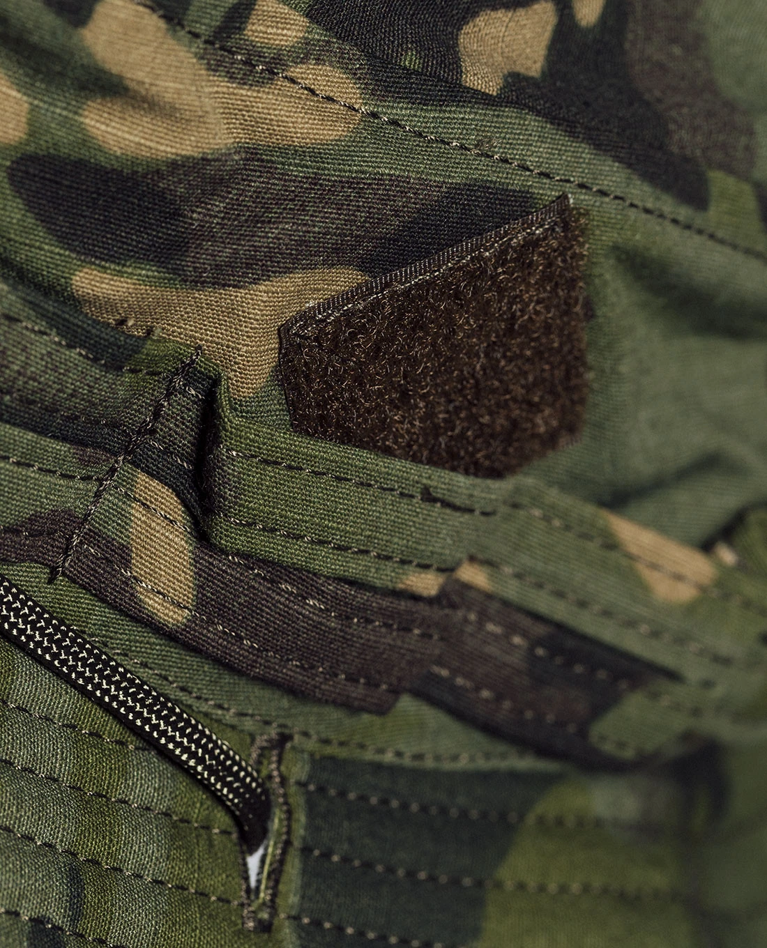 Insgesamt stehen drei Flauschklettflächen für ID und IFF Patches zur Verfügung und smarte Vegetationsschlaufen erlauben das Anbringen von ergänzendem Tarnmaterial.