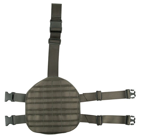 Die Beinplatte für Holster, Magazine und Zubehör ist bereits vorgeformt. Sie wird über zwei rutschfeste, verstellbare Beinriemen befestigt und kann mit Schlaufen am Koppel fixiert werden. Das Molle-System auf der Oberfläche macht die Kombination mit weiterer Ausrüstung möglich.