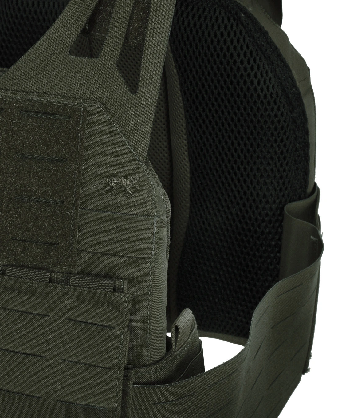 Der modulare Plate Carrier LC von Tasmanian Tiger ist ein hochwertiger, leichter Plattenträger mit MOLLE-System in neuester Laser Cut-Ausführung. Durch diese verwendete Fertigungstechnik bietet der Träger eine flache aufgeräumte Optik. Ein angenehmer Tragekomfort wird durch die längenverstellbaren Schulterträger erreicht, sowie durch die einstellbaren, elastischen Seitenbefestigungen. Der Plate Carrier kann mit SK-4-Platten (30 x 25 cm) bestückt werden. Um den Plate Carrier zu bestücken kann die Frontplatte abgenommen werden. Durch das MOLLE-System an Front und Seiten kann der Plate Carrier sehr individuell erweitert werden. Eine integrierte Funkgerätetasche erspart eine zusätzliche Anschaffung. Der Plate Carrier LC ist kompatibel mit dem TT FL Chest Rig.