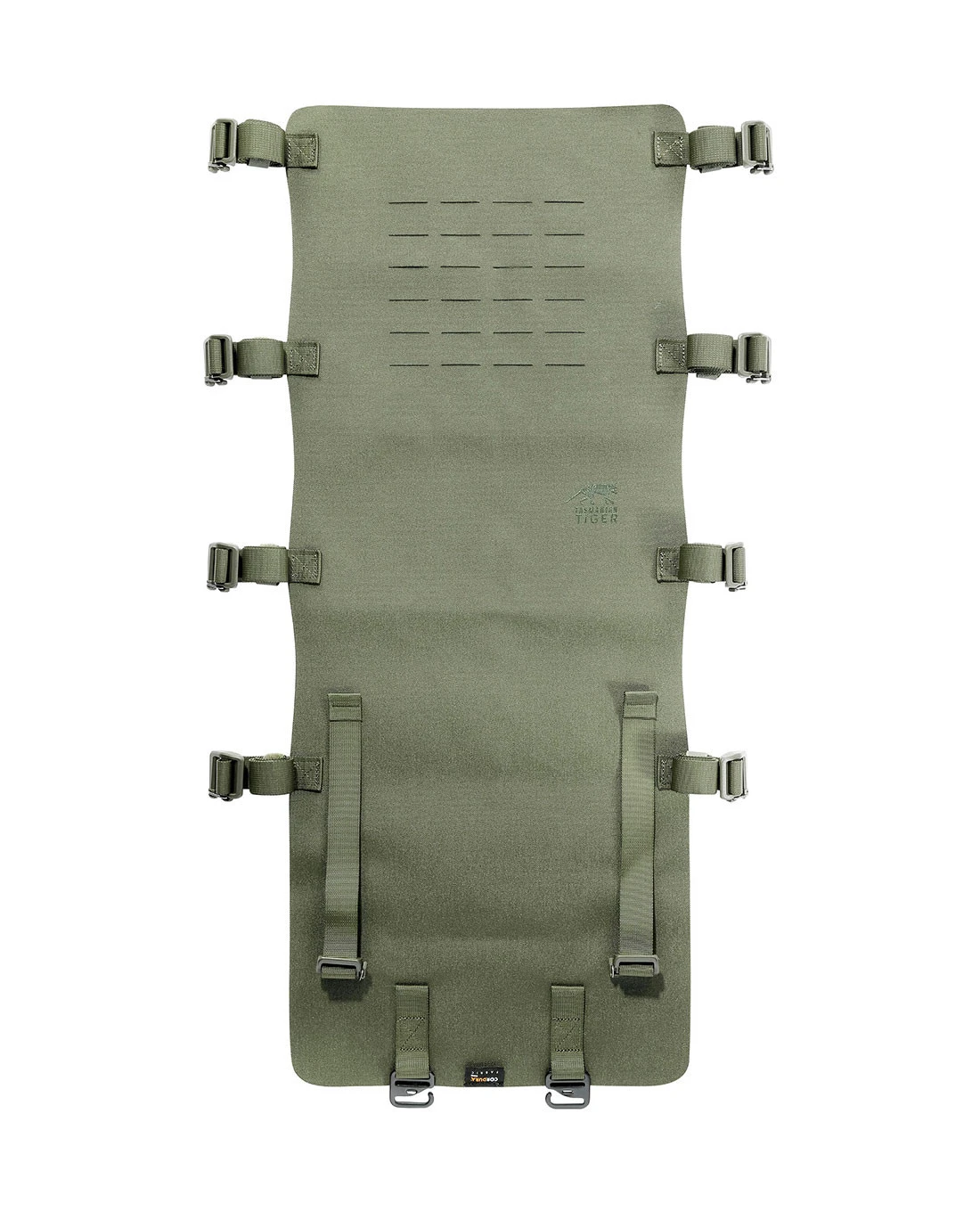 Für eine unkomplizierte Befestigung sperriger Gepäcklasten hat Tasmanian Tiger die TT Base Carrier Flap ins Tragesystem aufgenommen. Aus robustem Cordura 700 den Laminat und mit den Maßen 75 x 31 cm passgenau auf die Lastentrage zugeschnitten, unterstützt die Plane auch den Transport schwerster Lasten. Der Flap wird mit Schnallen und Haken an der Trägerplattform befestigt kann auch selbst fürmit Gear ergänzt werden; hierfür sind Lasercut M.O.L.L.E-Schlitzen eingearbeitet.