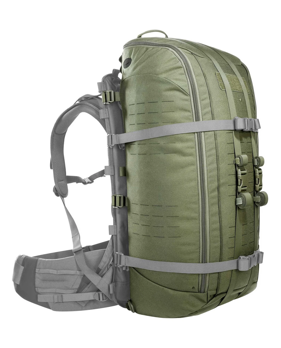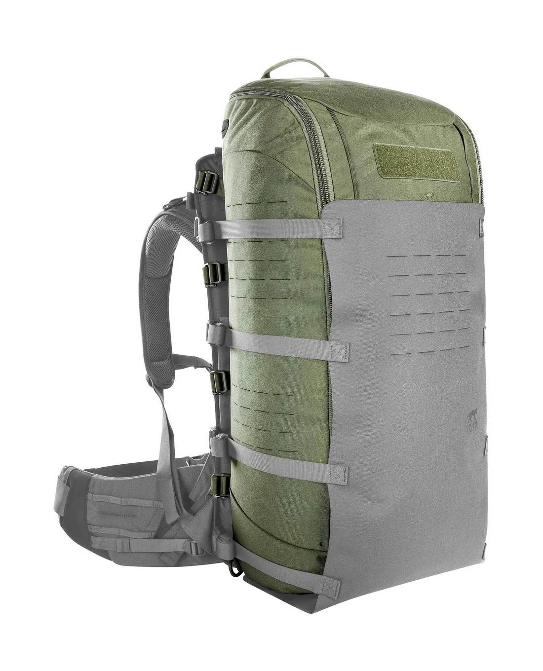 Front und Seiten des Packsacks sind mit M.O.L.L.E in Lasercut-Ausführung versehen und auch die Innenseiten des Base Carrier Packs sind mit M.O.L.L.E-Klett besetzt. Aus super robustem Cordura 700 den in T-Square Rip FD Verarbeitung und mit Antennendurchlass am Hauptfach steht der Packsack einem vollwertigen Rucksack in nichts nach, ist aber eine flexible Lösung, um das umfängliche TT Base Carrier System voll ausnutzen zu können.
