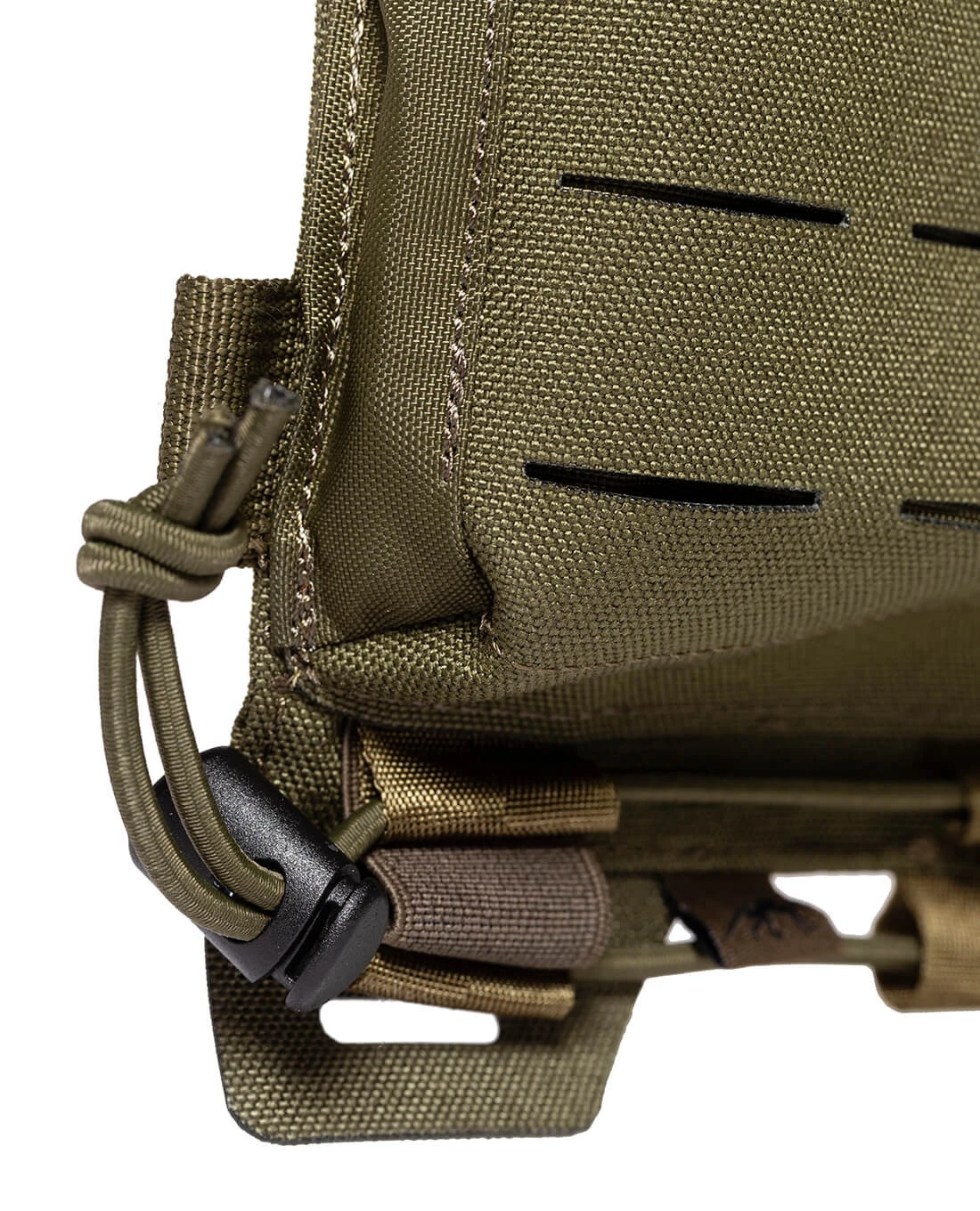 Vor allem die M.O.L.L.E.-Schlitze in Lasercut Ausführung tragen dazu bei, dass deutlich an Volumen gespart wurde, aber absolut kein Kompromiss bei der vielseitigen Verwendbarkeit eingegangen wurde. Das Magazin-Panel wird direkt am Plattenträger oder Rucksack montiert und ist ideal für die M.O.L.L.E. des TT Plate Carrier MK III, TT Plate Carrier LC oder des TT Modular Gunners Pack. Fixiert wird das TT Carrier Mag Panel LC M4 über das M.O.L.L.E. System. Jedes einzelne Magazin wird im jeweiligen Fach mit einem elastischen Bungee-Cord gesichert.