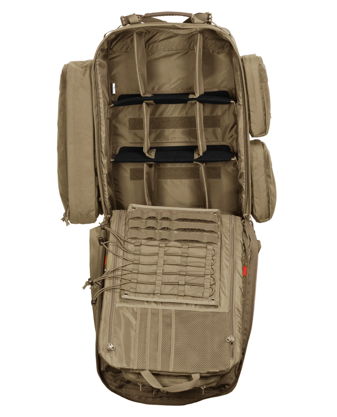 – Herausklettbares Panel mit M.O.L.L.E.-System und diversen Befestigungsmöglichkeiten und zusätzlichem Griff zum Aufhängen