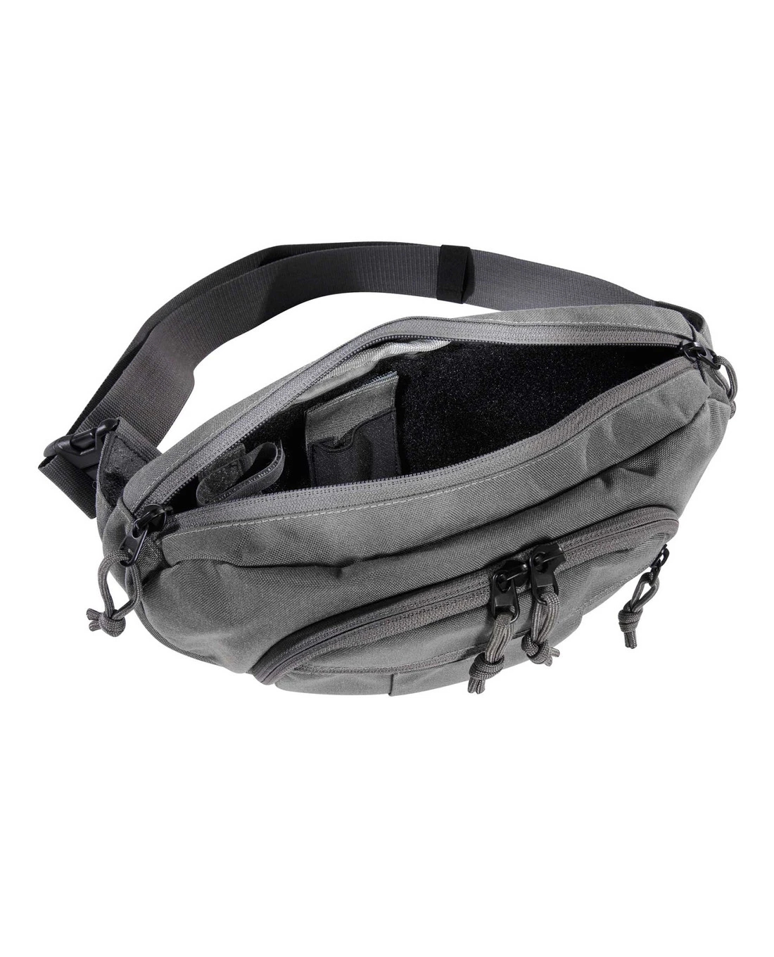 Die TT Hip Bag MKII ist ab 2022 in der neuen TT Farbe Titan Grey erhältlich. Die Bauchtasche mit flachem Profil und neutralem Look ist zweifach unterteilt und kann zum verdeckten Tragen einer Kurzwaffe eingesetzt werden. Die Waffe wird im Inneren an einer Klettflächenhalterung gesichert und auch Magazine oder Munition können an elastischen Schlaufen befestigt werden, um sie sicher zu transportieren.
