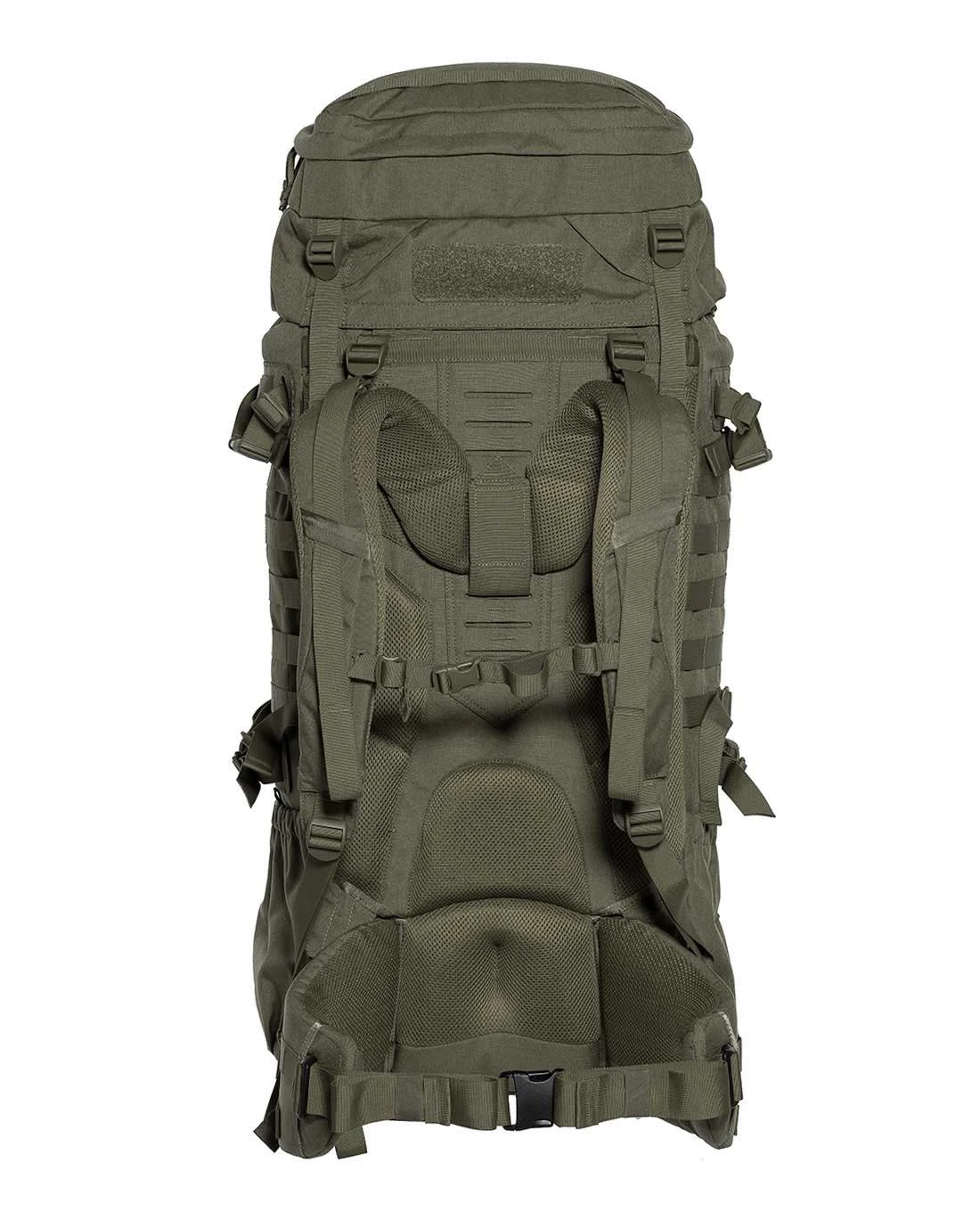 Bei einer Beladung bis zu 50kg ist das Tragesystem das definitive Top oder Flop jeder Operation. TT hat sich beim Mil-Ops 80 + 24 auf sein bewährtes V2-Plus Tragesystem verlassen, das mit einer optimalen Verteilung der Last überzeugt. Weil das Tragesystem auf die Länge des Rückens eingestellt werden kann und damit eine individuelle Anpassung der Polsterung stattfinden kann, ist ein guter Sitz gegeben. Zwei stabilisierende Alu-Stäbe stärken das Rückteil in der Senkrechte. Ein dünner Brustgurt sichert die Schultergurte vor dem Verrutschen.