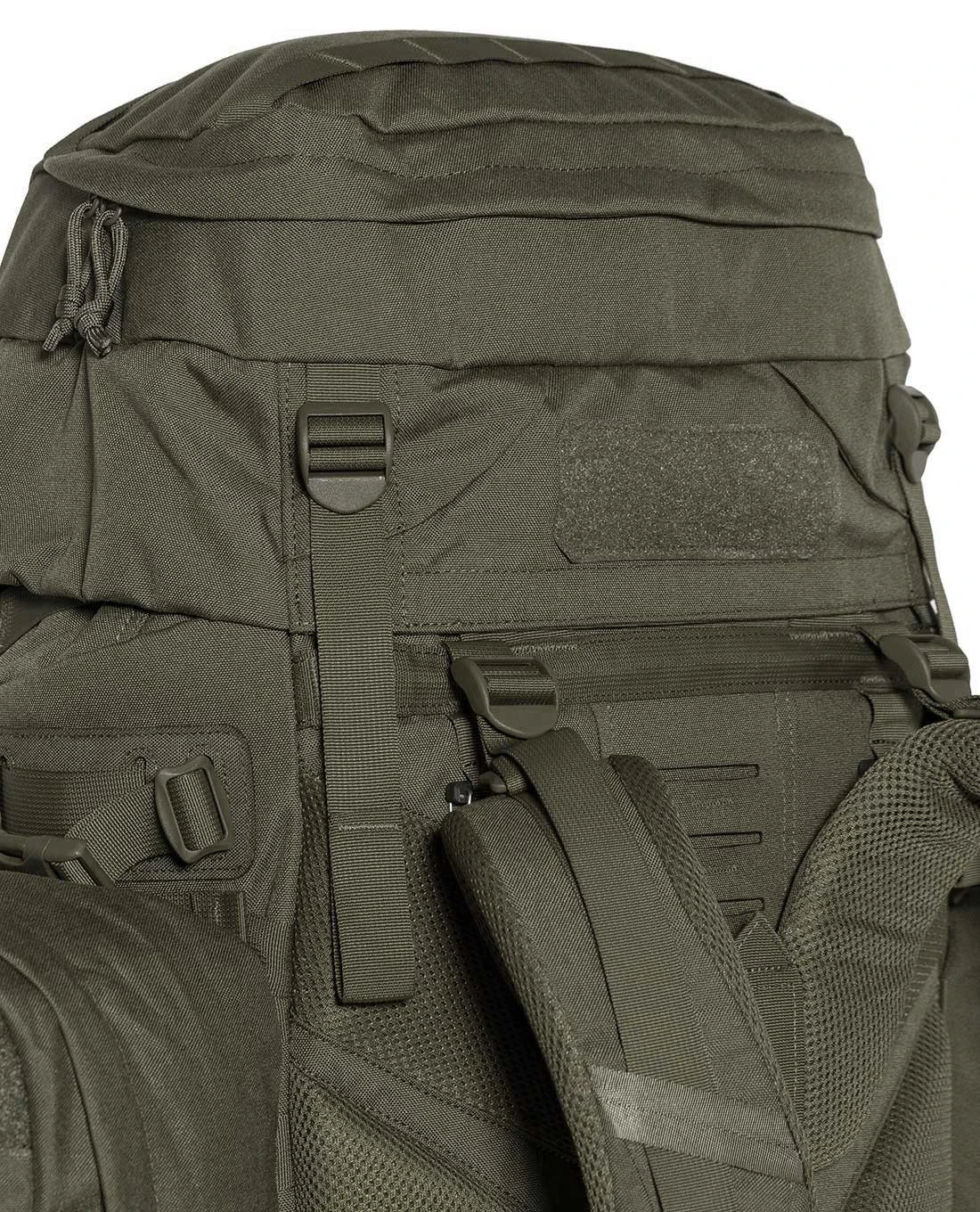 Wird das Gesamtvolumen des Rucksacks auf der anderen Seite einmal nicht voll ausgenutzt, kann er mittels der seitlichen Kompressionsriemen zusammengezurrt werden. Auch am Boden des Kampfrucksacks verlaufen Kompressionsriemen, die zur Befestigung weiterer Ausrüstung wie zum Beispiel eines Schlafsacks gebraucht werden können.