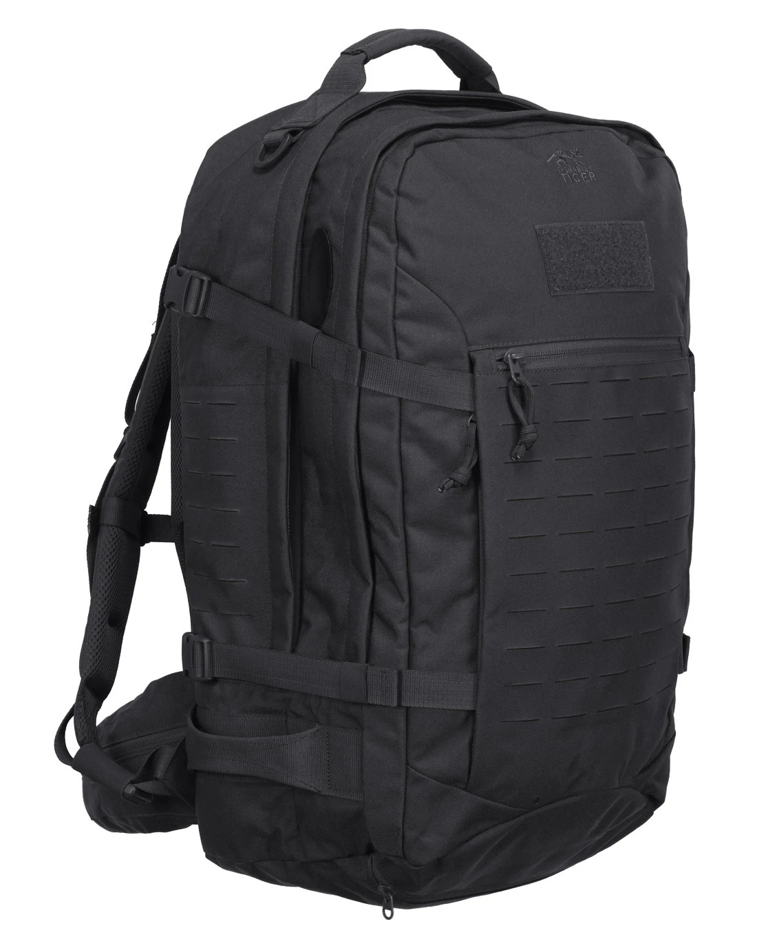 Das zweite Hauptfach bleibt dem modularen Konzept von Tasmanian Tiger treu. Die Rückseite aus Flauschklett mit Laser Cut M.O.L.L.E. über die komplette Höhe des Rucksacks ermöglicht die Bestückung mit M.O.L.L.E. kompatiblen Taschen und Klettpouches. Selbst deine Lieblings Patches finden einen Platz.