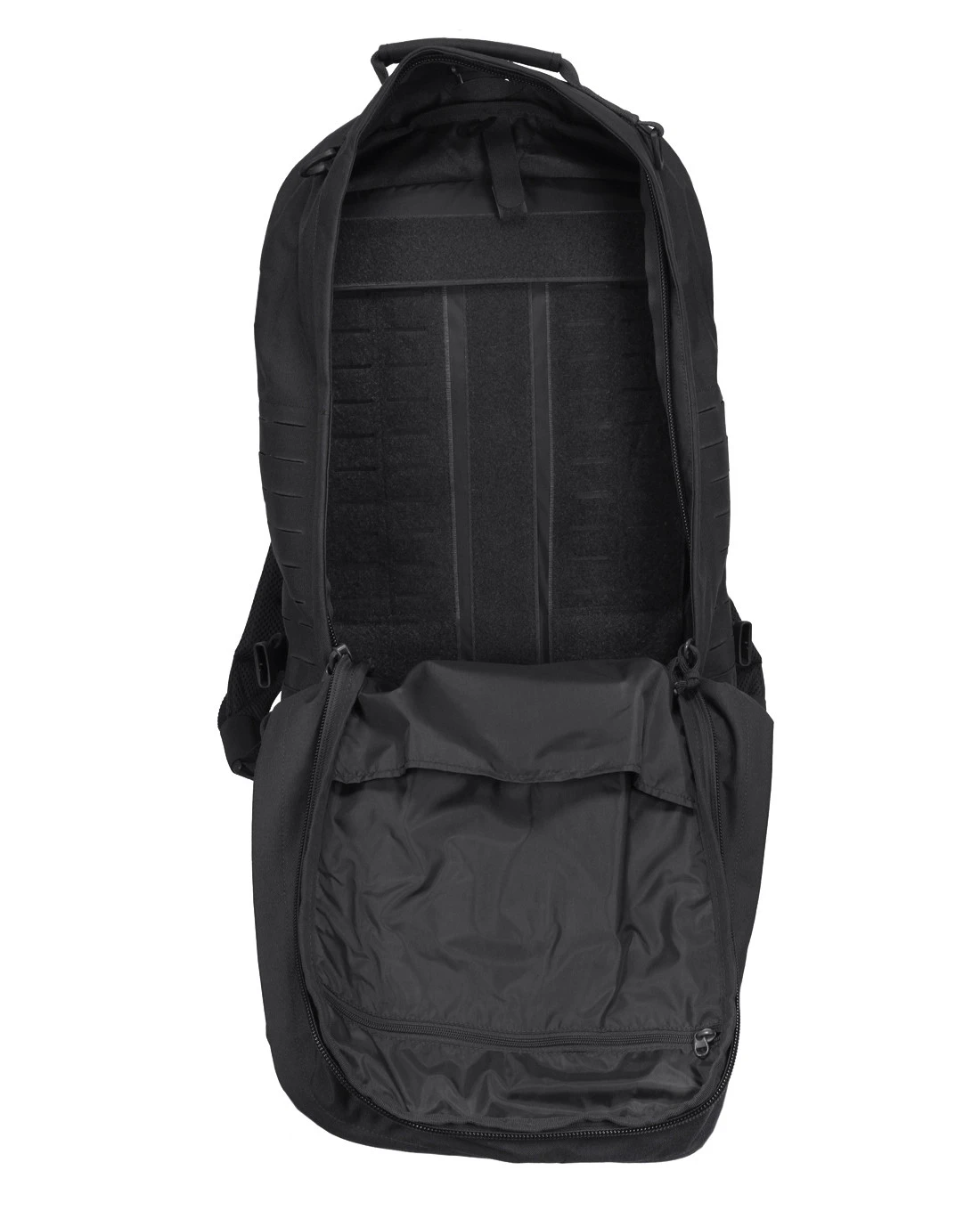 – Hauptfach mit Rückseite aus Flauschklett mit Laser Cut M.O.L.L.E.