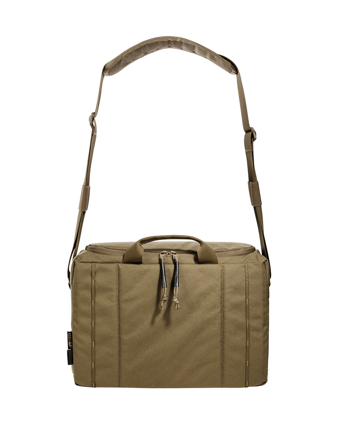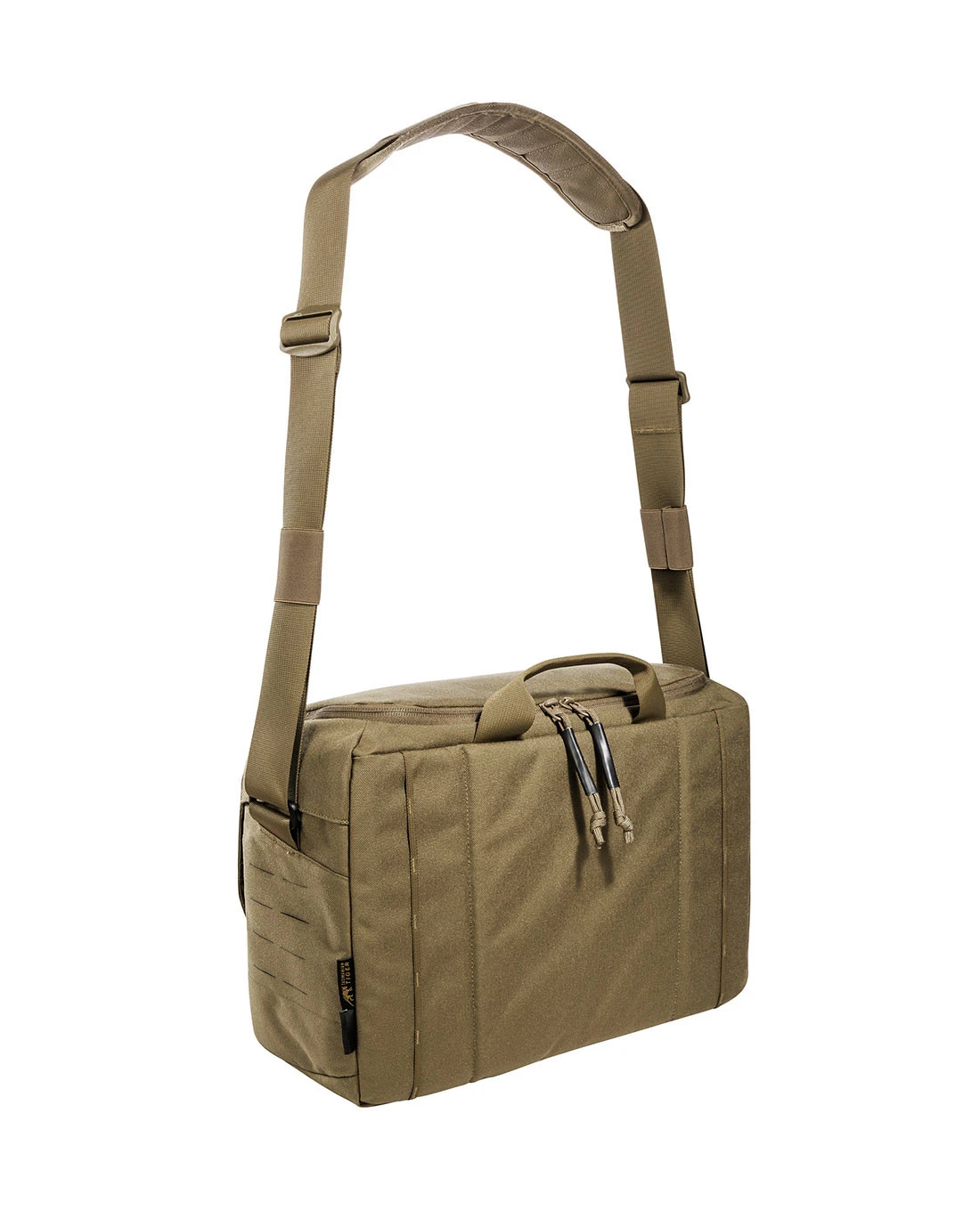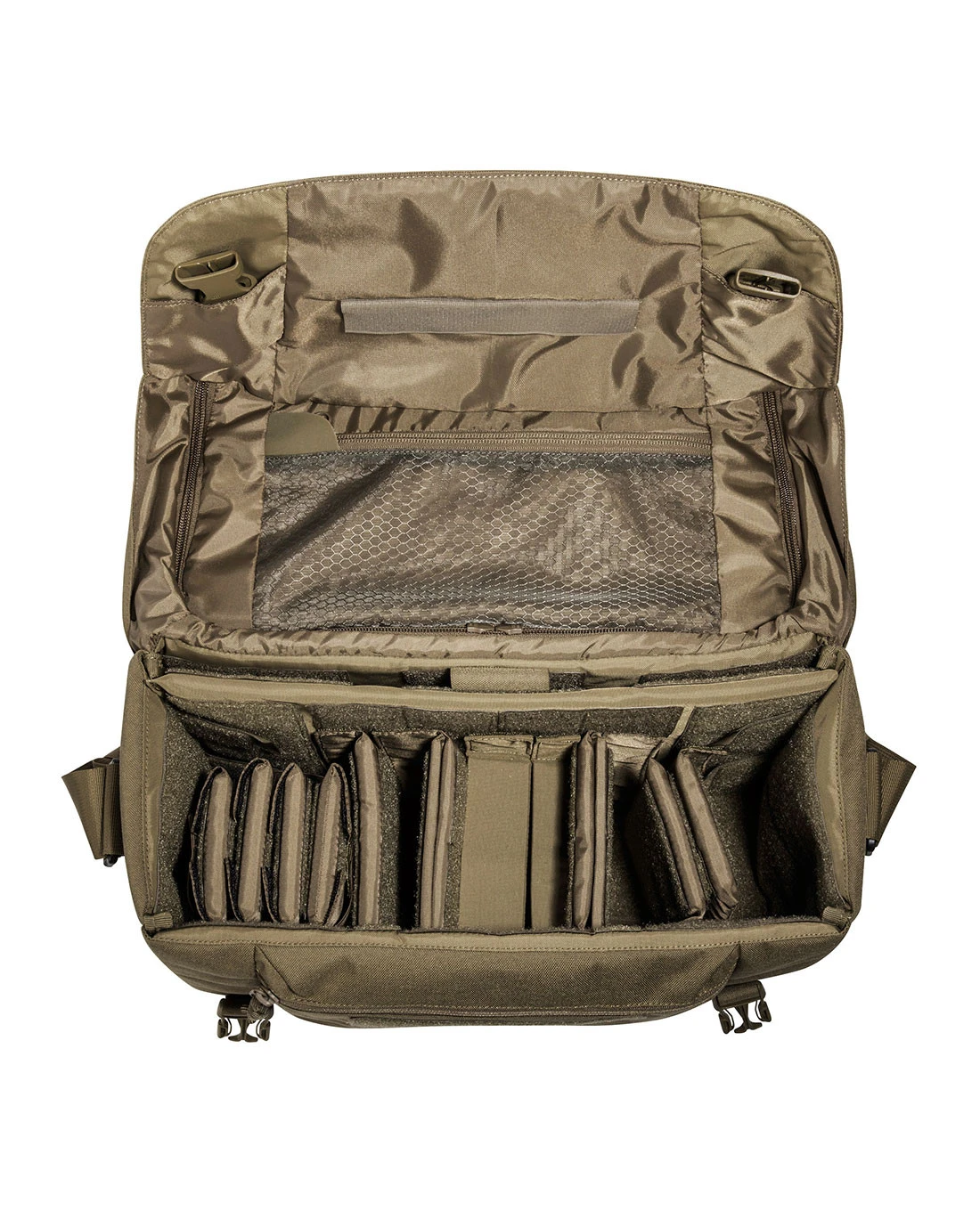 Die Tasche aus Cordura 700 den hat mit den Maßen 39 x 25 x 15 cm Platz für einen 12 Zoll-Laptop, der im Laptop-Fach untergebracht werden kann. Das Laptopfach ist in der Breite verstellbar und kann als Waffentasche umfunktioniert werden. Im Inneren des Hauptfachs sind große M.O.L.L.E-Klettfläche angebracht, mit denen die flexibel verwendbaren Unterteilungen und Polster umgesetzt werden können.