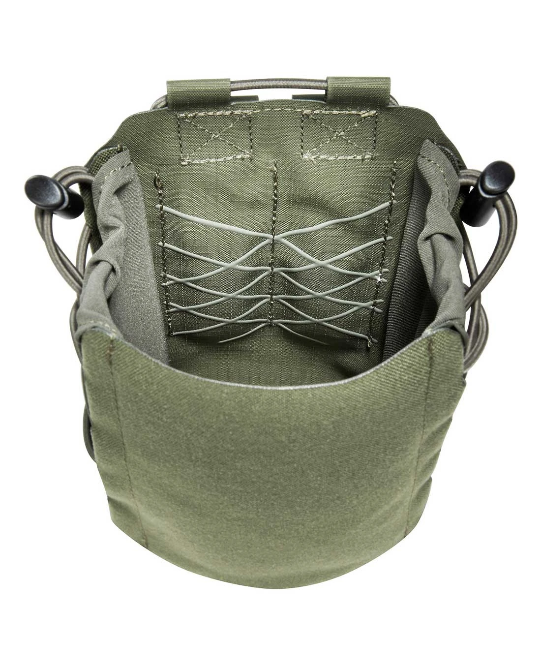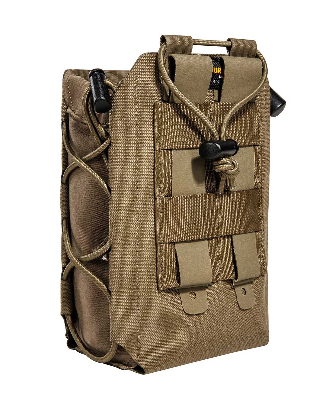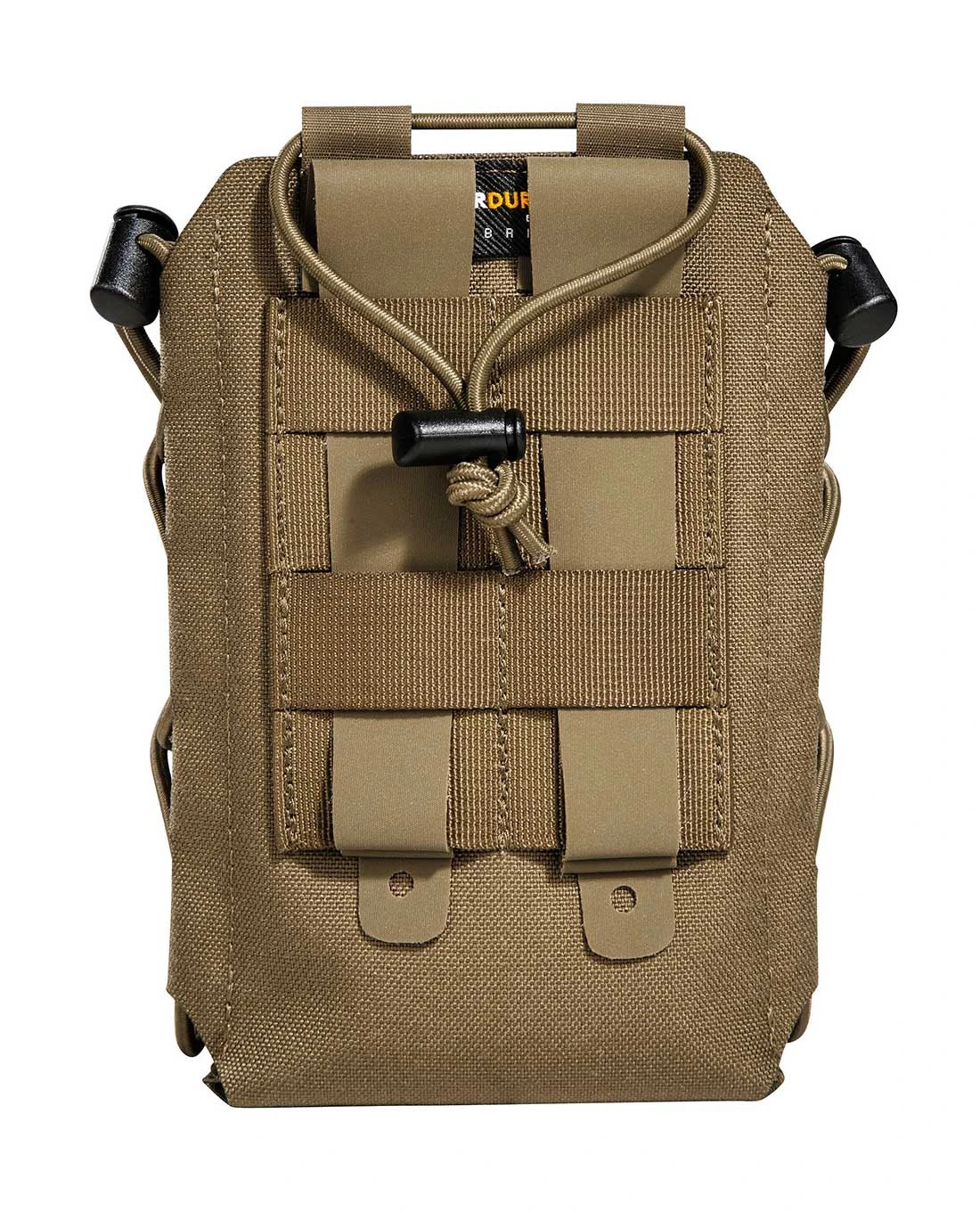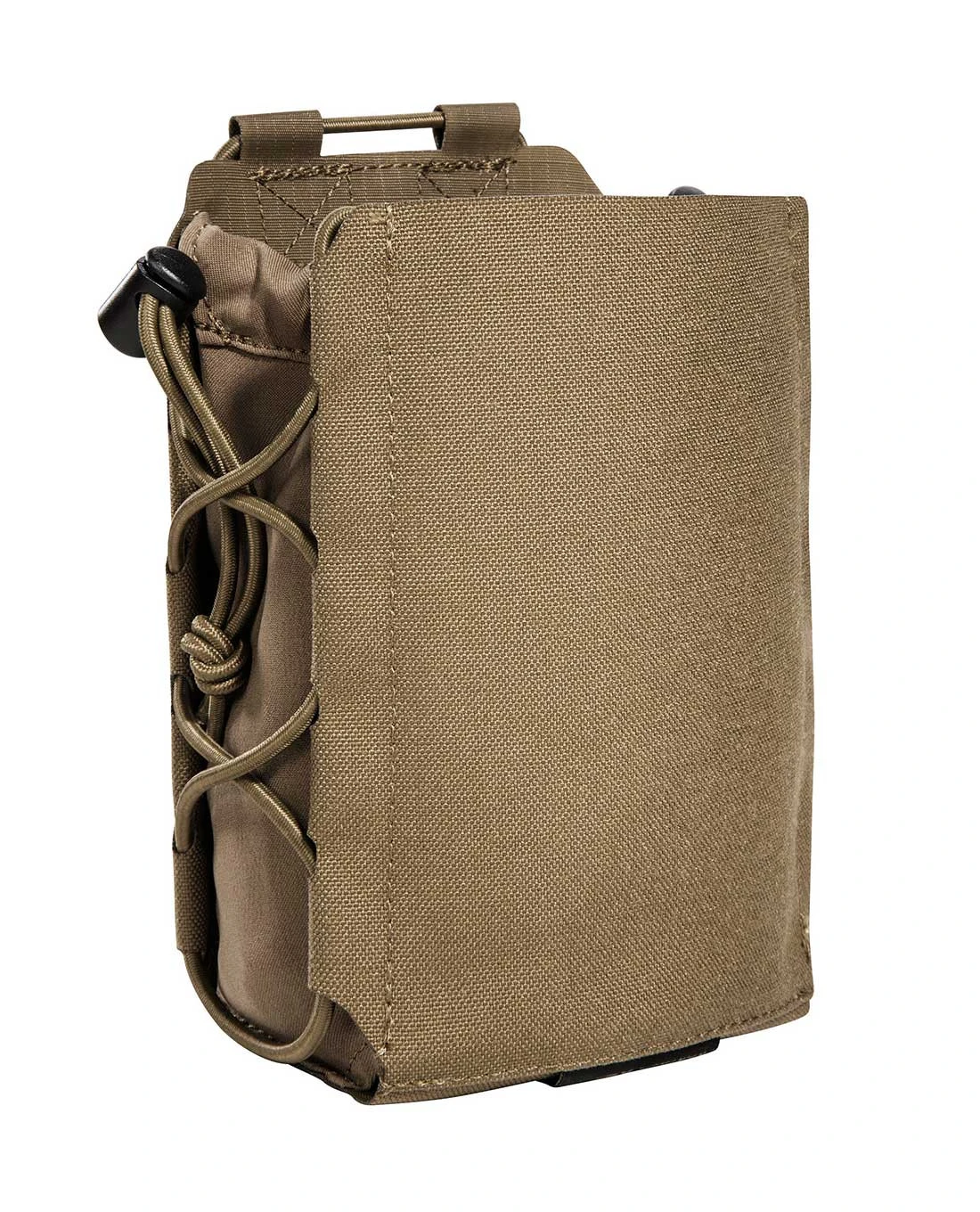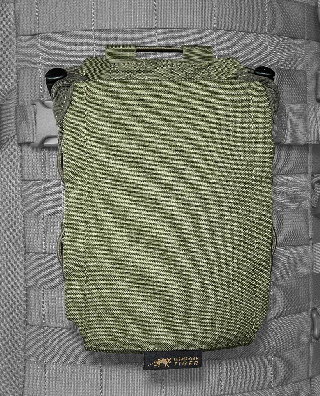 Ein einfacher elastischer Kordelverschluss sichert die Flasche for dem Herausrutschen. Mit einem super flachen Profil und leichten Gewicht sowie dank der einfachen Befestigung an zwei M.O.L.L.E-Schlaufen ist kleine Multipurpose Pouch der No-Brainer im 2022er Sortiment von Tasmanian Tiger.