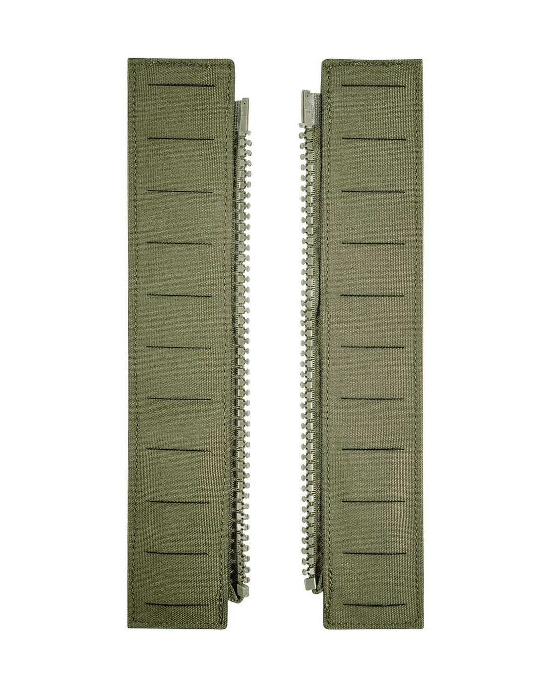 Damit auch Plattenträger ohne Reißverschluss genutzt werden können, kann der Reißverschluss-M.O.L.L.E Streifen angeschlossen werden, um das Einsatz-Pack dann auf allen Plattenträgern mit 6 M.O.L.L.E-Reihen per M.O.L.L.E-System zu befestigen.