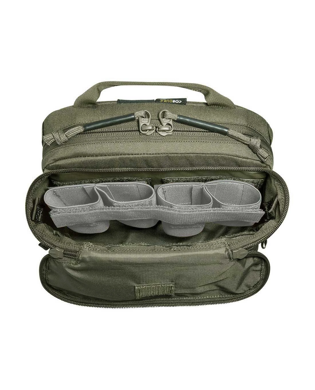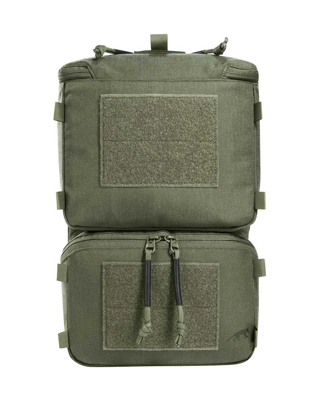 Auf dem Frontfach sitzen zwei Taschen auf. Die untere der beiden Packtaschen fasst 3 Liter und wird mit einem Zwei-Wege-Reißverschluss geschlossen. Die obere Tasche fasst 2 Liter; sie ist mit auswechselbaren Magazineinsätzen ausgestattet; vorgesehen sind die Einsätze für 3 x M4 (PMAG)-Magazine (72 g), 4 x Pistolen-/ MP7-Magazine (40 g), sowie 4 x 40 mm Granaten (Flashbangs) (60 g). Die modularen Einsätze können herausgenommen und ausgetauscht werden, sie können auch im Hauptfach angebracht werden. Soll das gesamte Pack oder nur Teile der Taschen im Volumen komprimiert werden, so können dazu die beiliegenden Bungee-Cords mit Kordelstopper benutzt werden.