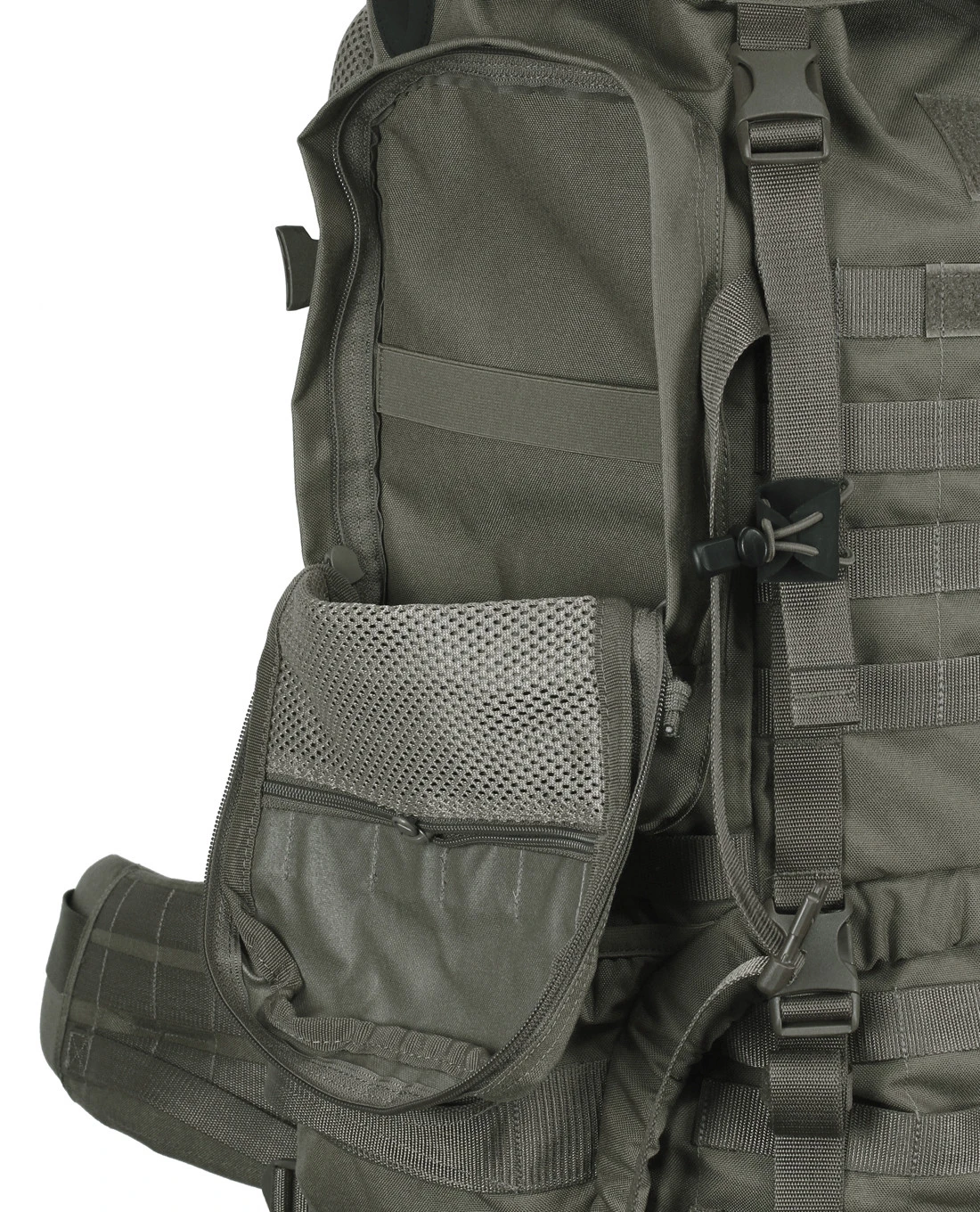 Alle Außenseiten des Multifunktionsrucksacks sind mit dem M.O.L.L.E.-System ausgestattet, so dass beliebig weitere Taschen oder kleineres Zusatz-Equipment eingeschlauft werden kann. Durchlässe für Antennen und Kabel, sowie ausreichend Flauschklettfläche für ID und Morale Patches runden die umfangreiche Ausstattung des Raid Packs ab.