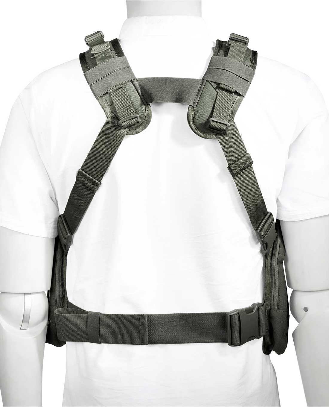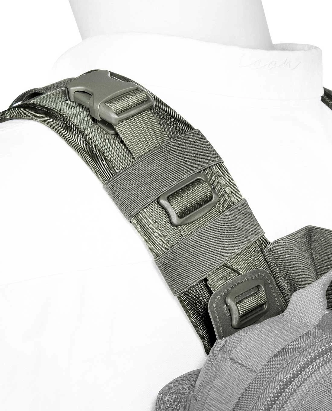 Das Set besteht aus einem Schultergurt-System, mit dem der TT Assault Pack 12 am TT Chest Rig MKII befestigt werden kann. Lasercut-M.O.L.L.E Streifen auf den beiden Schultergurten sind für die Befestigung von Comm-Taschen oder Mag Pouches vorgesehen.