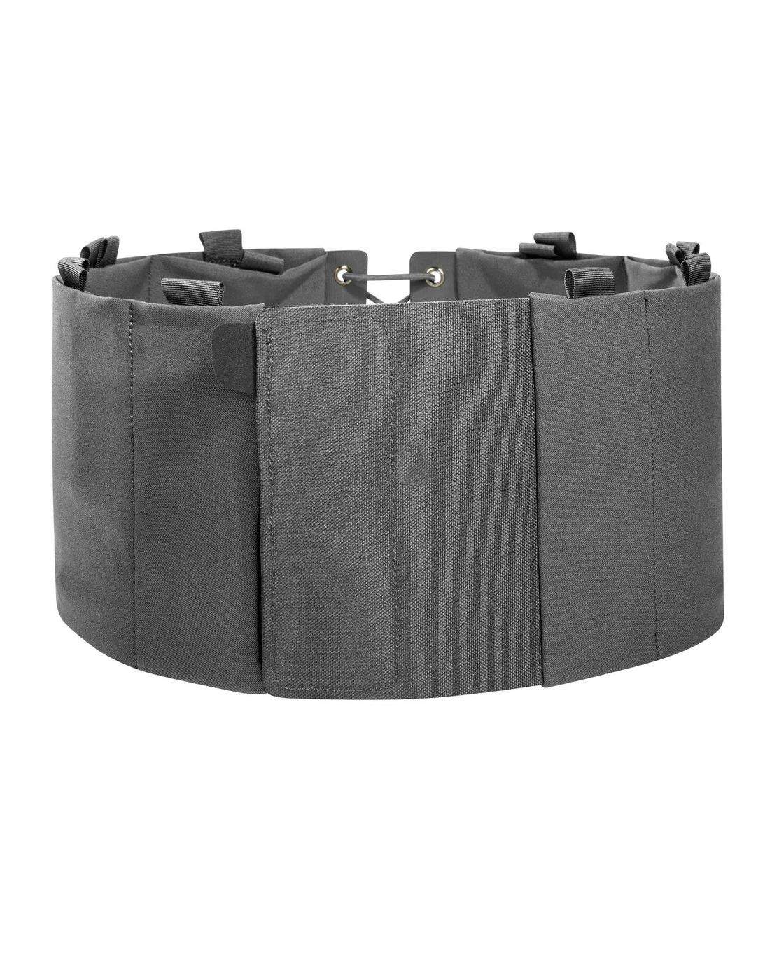 Geschlossen wird der Secret Cummerbund mit einem Klettverschluss. Mit vier Klettflächen (Fleece) außen und acht elastischen Einschubtaschen (zwei davon mit Klettfläche innen) können Pistolen- und AR15-Magazine untergebracht werden.