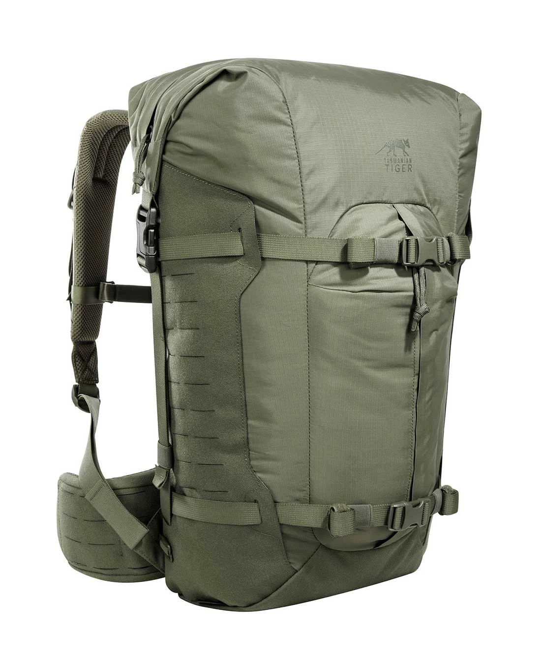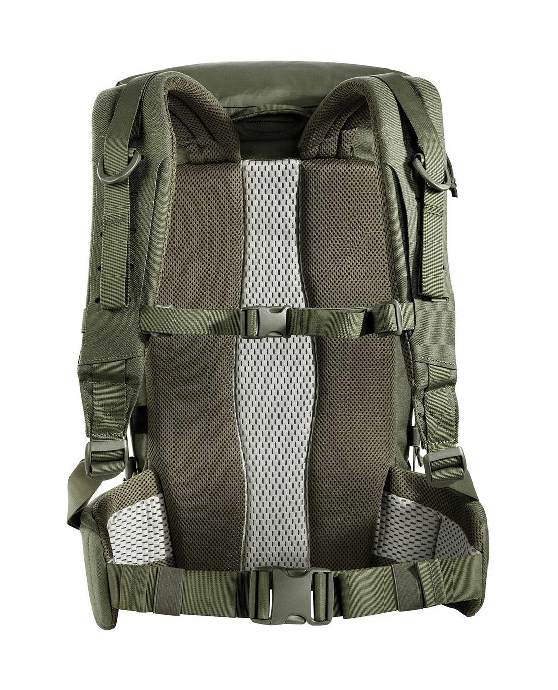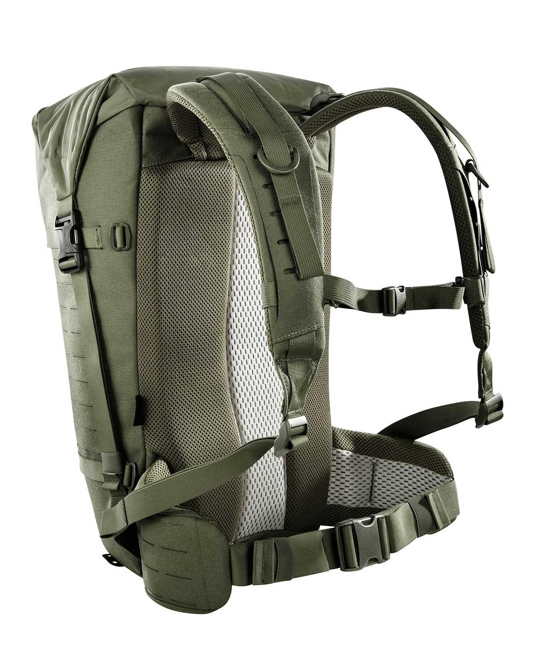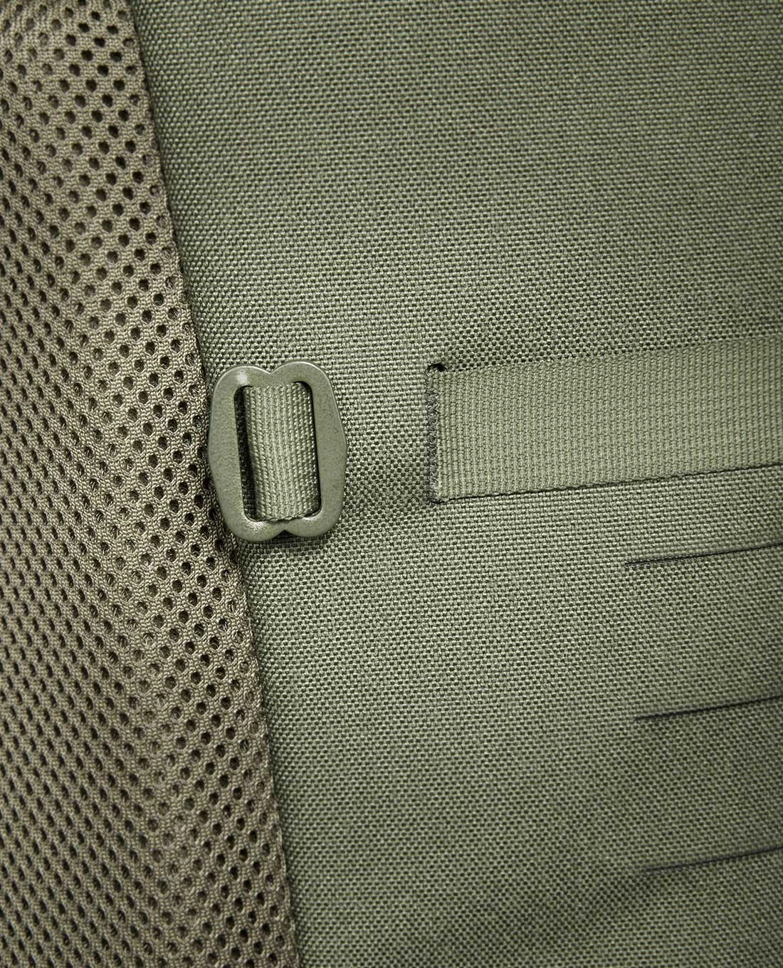 Obwohl der Daypack mit seinem unaufgeregten Oberflächendesign auch zivil überzeugt, hat er alle Befestigungsmöglichkeiten für Eure Gear im Einsatz: Im Inneren des Hauptfachs ist ein M.O.L.L.E-Klett für die modulare Erweiterung vorgesehen und auch auf den Seiten, dem Hüftgurt und den Schultergurten ist dank des Lasercut-M.O.L.L.E-Systems reichlich Platz für Pouches und Kleinteile. Auch eine Trinksystemvorbereitung und Kabel-Durchlässe am Hauptfach sind vorhanden.