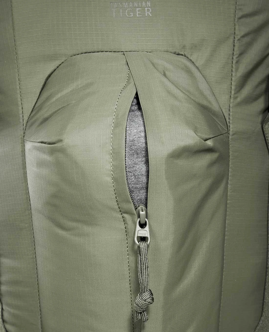 Eine Fronttasche mit senkrechtem Reißverschluss ist schnell von außen zugänglich.
