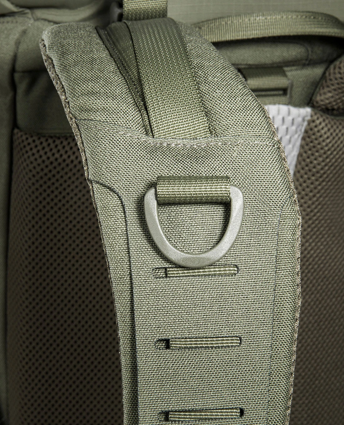 Zur Organisation im Inneren ist ein M.O.L.L.E. Klett zur modularen Erweiterung angebracht, außerdem sind eine Trinksystemvorbereitung und Antennendurchlässe im Hauptfach eingearbeitet. Ganz im Sinne der Volumenersparnis können die beiden umlaufenden Kompressionsriemen den Rucksack zusammenschrumpfen, wenn seine Kapazität nicht voll ausgenutzt wird. Im Reißverschlussfach auf der Vorderseite können dennoch jederzeit schnell griffbereite EDC Teile oder Dokumente Platz finden.