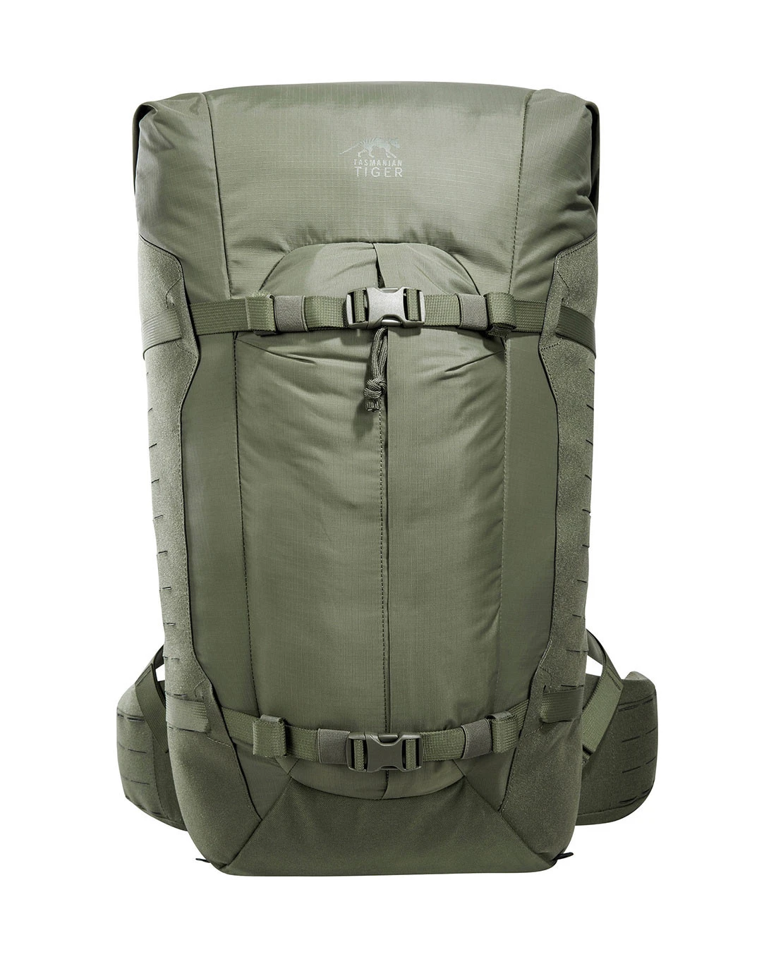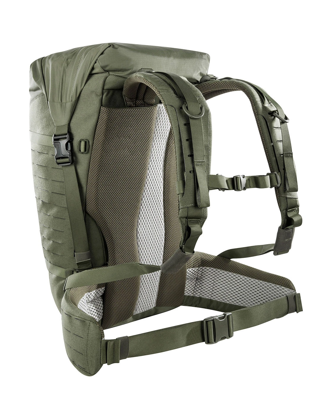 Der Sentinel 40 ist mit einem Padded-Back Tragesystem ausgestattet, das den Rücken unterstützt und vor im Hauptfach unsanft verpackten Kanten schützt. Die gepolsterten Schultergurte können mit einem Brustgurt stabilisiert werden. Die Hüftflossen mit M.O.L.L.E-System in Lasercut-Ausführung können abgenommen werden.