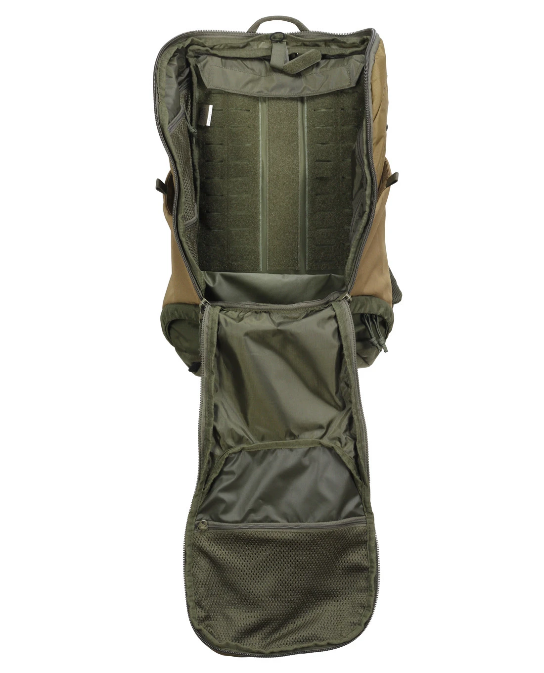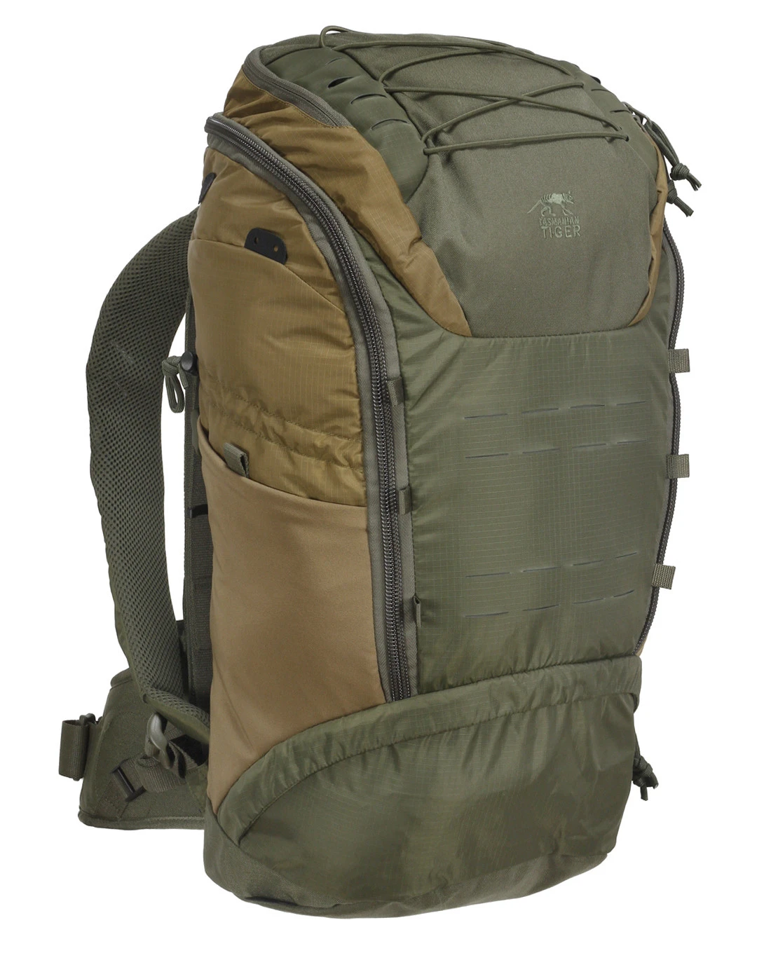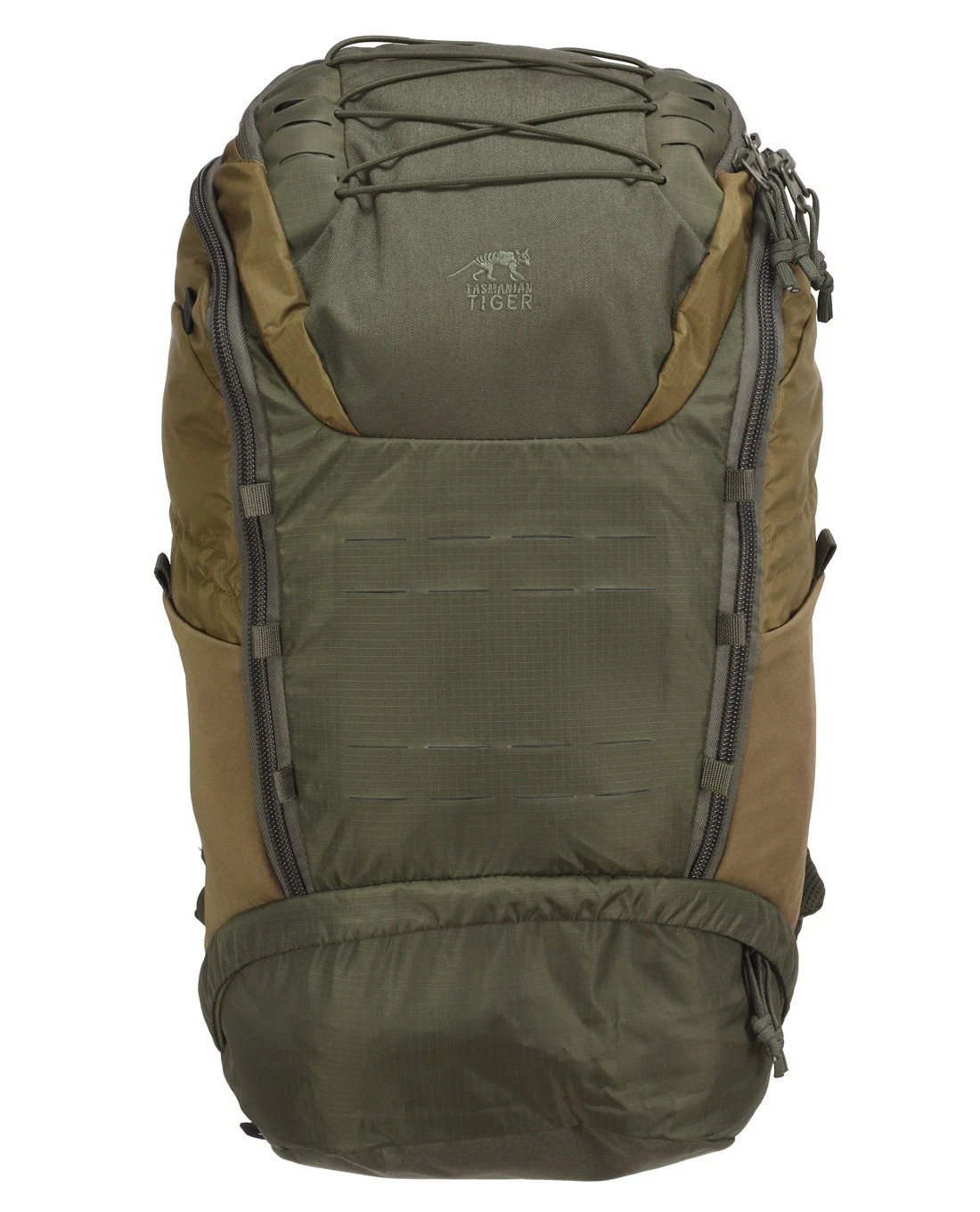 Der Tasmanian Tiger Modular Pack 30 Vent in der Farbe Oliv ist ein modularer 30 Liter Rucksack mit dem innovativen, belüfteten X Vent Zero Plus-Tragesystem. Der TT Modular Pack 30 Vent ist in Haupt-, Boden- und Decklfach unterteilt und verfügt neben dem höhenverstellbaren Brustgurt, Hüftflossen und Antennendurchlässen für Kommunikations-Equipment, über MOLLE-Klettfläche im Innenbereich für individuelle und modulare Erweiterungen. Die Zickzack-Schnürung und elastische Seitentaschen bieten zusätzliche Staumöglichkeiten.