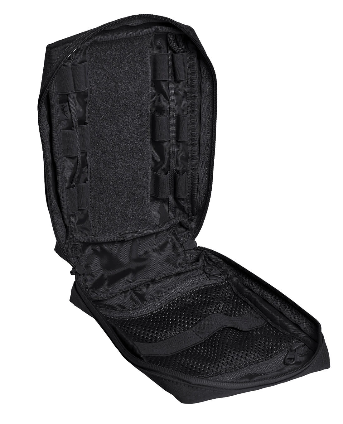 Im Inneren ist es dann einfach, sich schnell zurecht zu finden: Dank zahlreicher elastischer Schlaufen, dank eines Gurtbandsystems und eines Flauschpanels können Teile gesichert am Platz gehalten werden. Eine Mesh-Tasche dient zusätzlich dazu, sensible Teile zu schützen und sichtbar zu platzieren. An der Außenseite hat eine flache Reißverschlusstasche vor allem die Funktion, schnell griffbereites Equipment zu sichern. Die Tac Pouch 6.1 wird aus CORDURA 700 den gefertigt und vertikal befestigt; dazu werden vier M.O.L.L.E. Schlaufen benötigt.