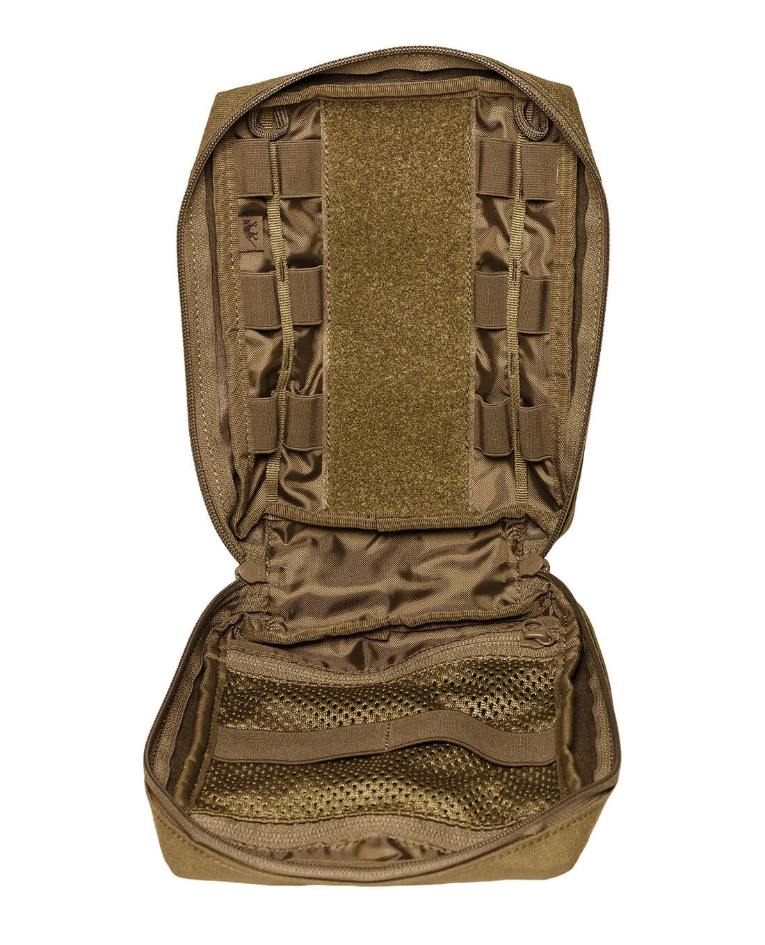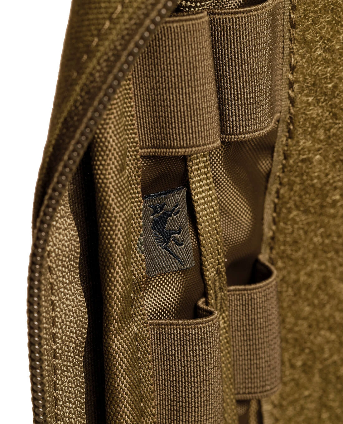 Die TT Tac Pouch 6.1 aus CORDURA 700 den ist eine Zubehörtasche für universelle Zwecke; Kleinteile können hier systematisch und sicher befestigt werden. Die Tasche mit den Außenmaßen 15 x 20 x 6 cm wird senkrecht befestigt. Vier M.O.L.L.E.-Schlaufen werden zur Befestigung benötigt. Die Allzwecktasche ist mit einer weiten Öffnung des Hauptfachs ausgestattet, so dass die Tasche einfach bepackt werden kann.