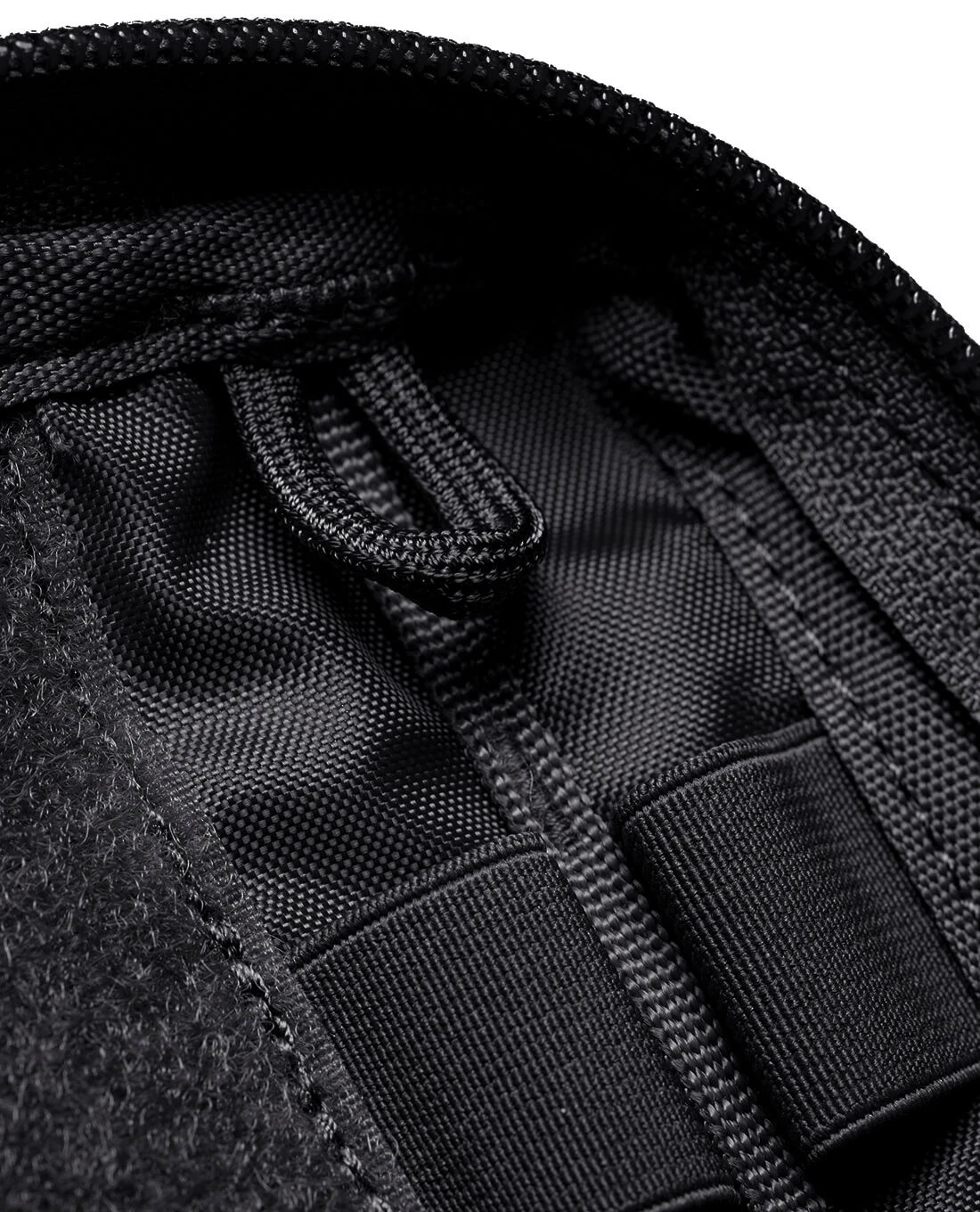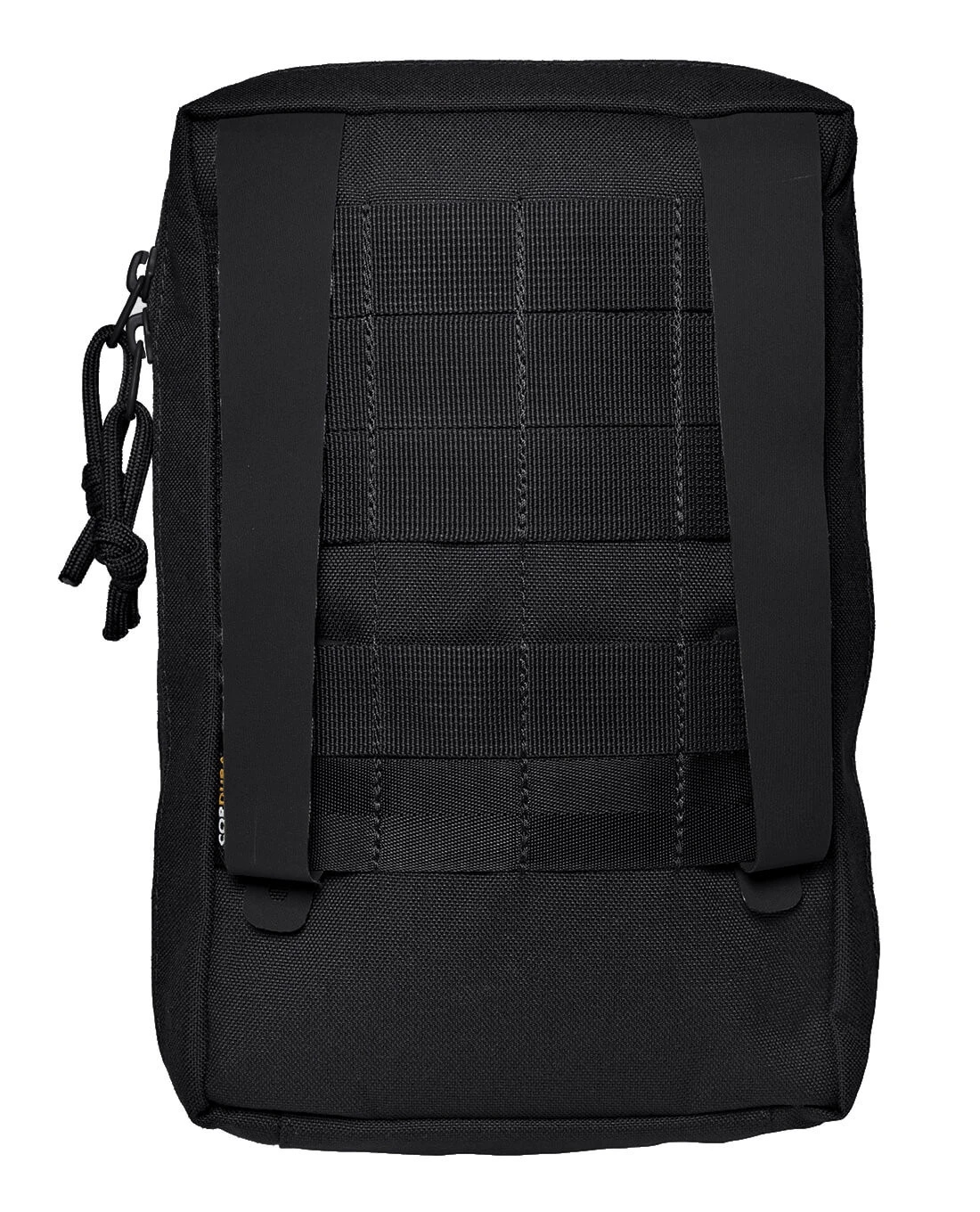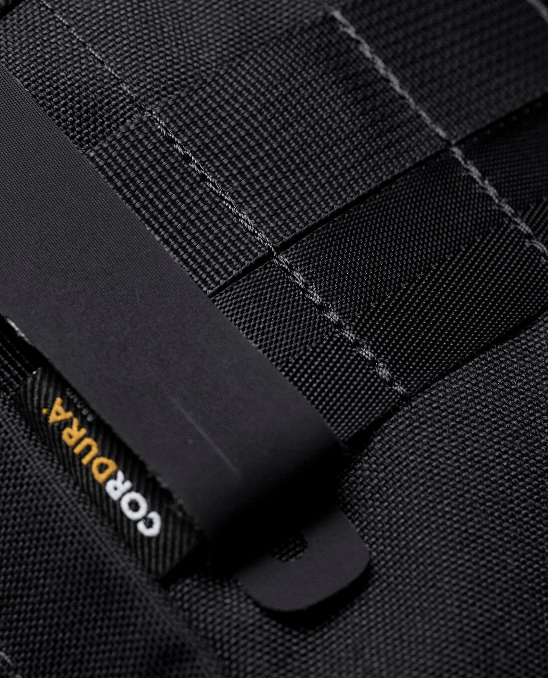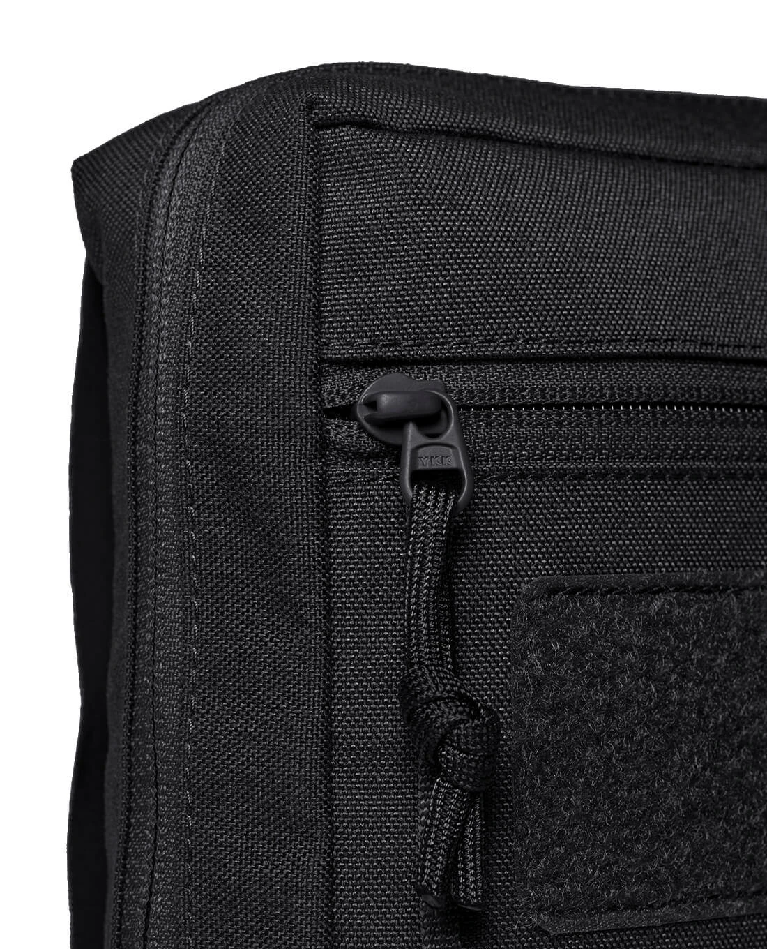 Innen können Kleinteile in der einsehbaren Netztasche organisiert werden. Verschiedene elastische Schlaufen und ein Gurtbandsystem können außerdem zur Befestigung von Kleinteilen benutzt werden. Eine Flauschfläche befindet sich zusätzlich im Inneren, an der kleine Teile oder Patches befestigt werden können. Auf der Vorderseite können Dokumente in einem flachen Reißverschlussfach aufbewahrt werden. Es werden vier M.O.L.L.E.-Schlaufen benötigt, um die Tasche vertikal zu befestigen.