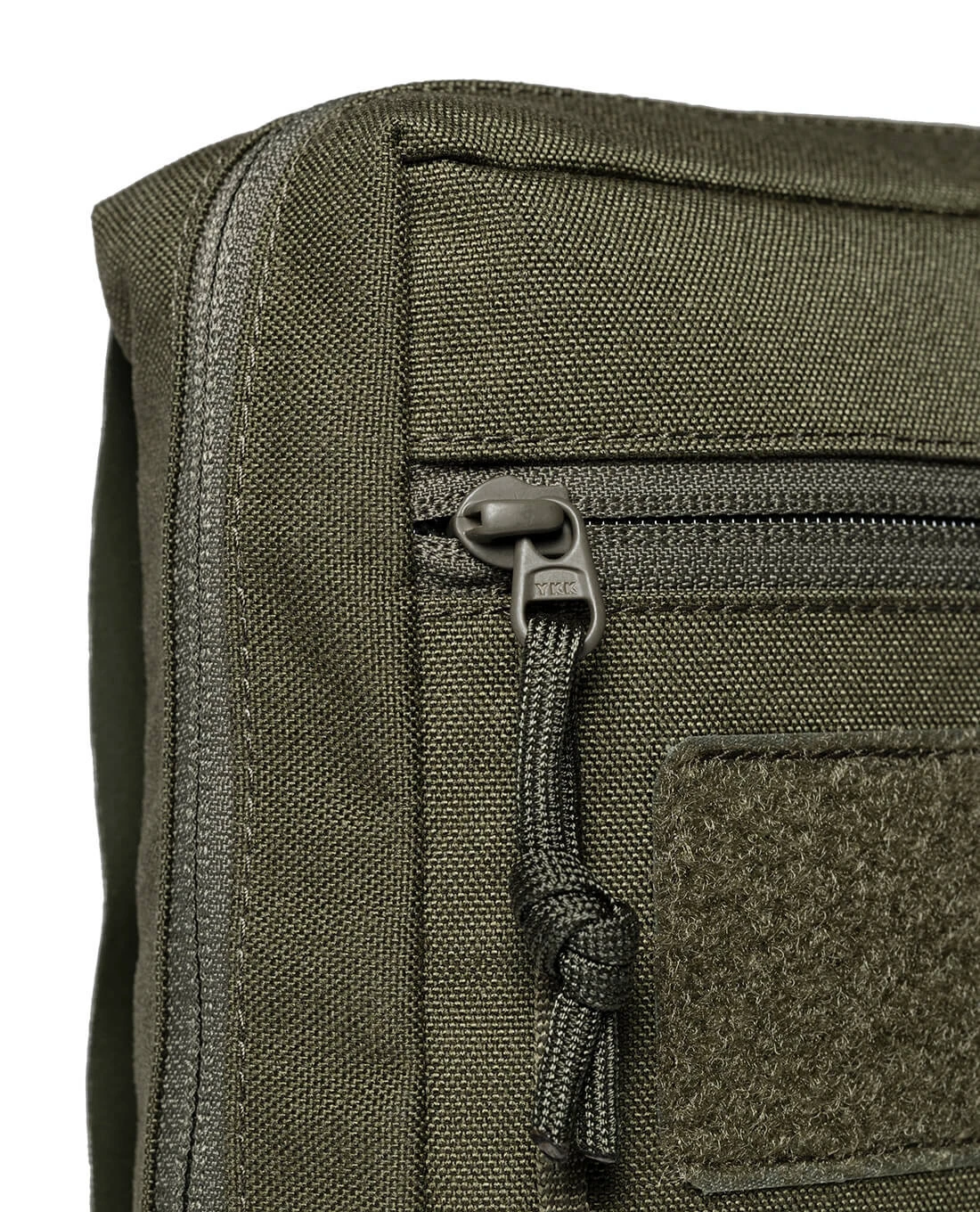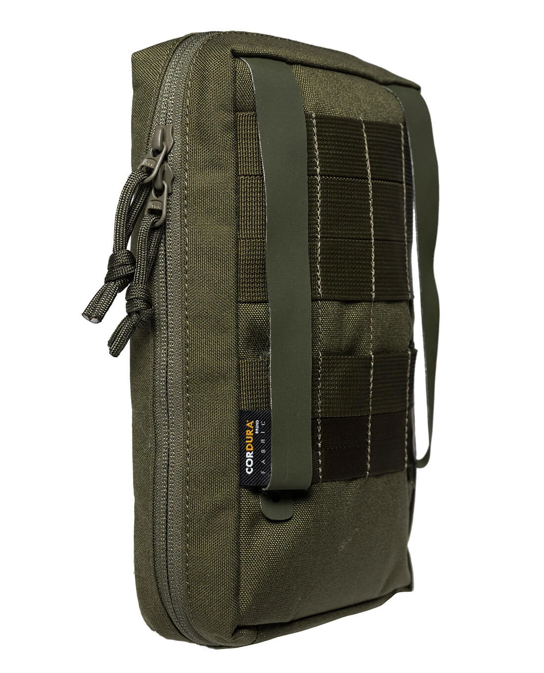 Innen können Kleinteile in der einsehbaren Netztasche ordentlich eingeordnet werden und es stehen zahlreiche elastische Schlaufen und ein Gurtbandsystem zur Befestigung zur Verfügung. Eine Flauschfläche ist zudem eingelegt, an der kleine Teile oder Patches befestigt werden können. Auf der Vorderseite ist ein flaches Reißverschlussfach eingenäht, das für Dokumente wie etwa Ausweispapiere genutzt werden kann. Das CORDURA 700 den ist in typischer Tasmanian Tiger Qualität natürlich ein Muss. Die Tasche wird vertikal an Gürtel oder Weste befestigt und benötigt dafür vier M.O.L.L.E.-Schlaufen.