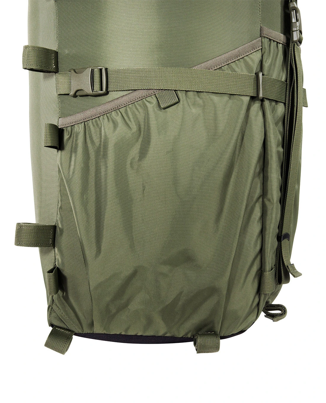 Das große Volumen des Packsack 2 erlaubt es, eine Vielzahl von Gegenständen sicher zu verstauen. Dank Schneefang mit zwei Schnürzügen unter dem Deckel lässt er sich sicher verschließen und mit der Deckelklappe sichern. Die praktischen Einstecktaschen an der Front und an den Seiten bieten zusätzlichen Stauraum und ermöglichen eine organisierte Aufbewahrung von Ausrüstung und Bushcraft Essentials. Materialschlaufen auf der Front und auf dem Deckel sind für zusätzliche Ausrüstung oder Zubehör vorgesehen. Die umlaufenden Kompressionsriemen ermöglichen eine effektive Fixierung des Gepäcks, sodass nichts verrutscht oder ungesichert bleibt.