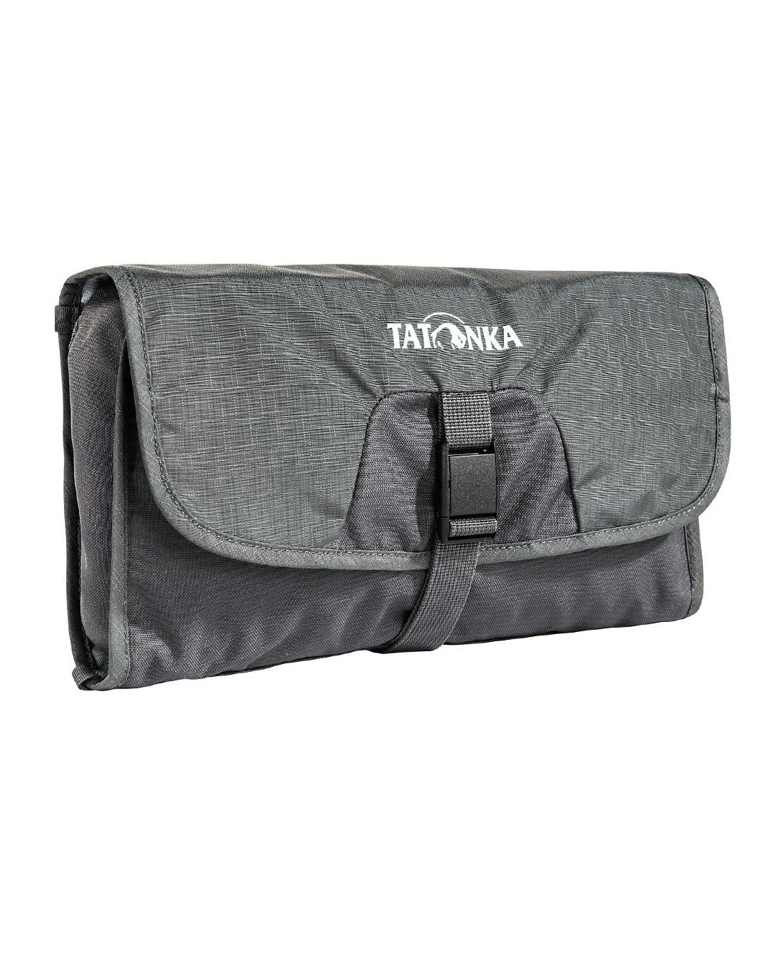 Aufgeklappt verfügt die Tasche über zwei große Reißverschlussfächer und drei Einstecktaschen. In einem großen, flachen Reißverschlussfach kann sogar ein Mikrofaserhandtuch untergebracht werden. Die Fertigung aus einem weichen, PU-beschichteten Polyesterstoff aus 450 den-Garn sorgt nicht nur für eine besonders robuste Struktur, sondern ist auch wasserabweisend und damit ideal für eine kleine Waschtasche für die schnelle Katzenwäsche unterwegs.