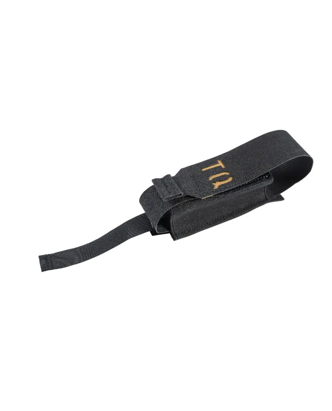 Diese Tourniquet Pouch besticht durch eine clevere Konstruktion, die das Ziehen des TQs erleichtert. Die mit „TQ“ beschriftete Flappe ist mit Klett verschlossen und schiebt nach dem Öffnen durch Zug am Deckel das Tourniquet weit genug aus der Tasche, um es sicher greifen zu können. Für einen besseren Griff des Deckels ist das Ende umgeklappt und vernäht. Die Seiten der Tasche gewährleisten einen sicheren Sitz des Tourniquets und verdecken den Knebel. Auf der Rückseite hat die Tasche PALS+ zur Anbringung an 50mm Gürteln oder M.O.L.L.E. Plattformen. Eine Besonderheit ist hier der zusätzliche Schlitz, der eine sichere Montage an unterschiedlich hohen M.O.L.L.E. Systemen erleichtert.