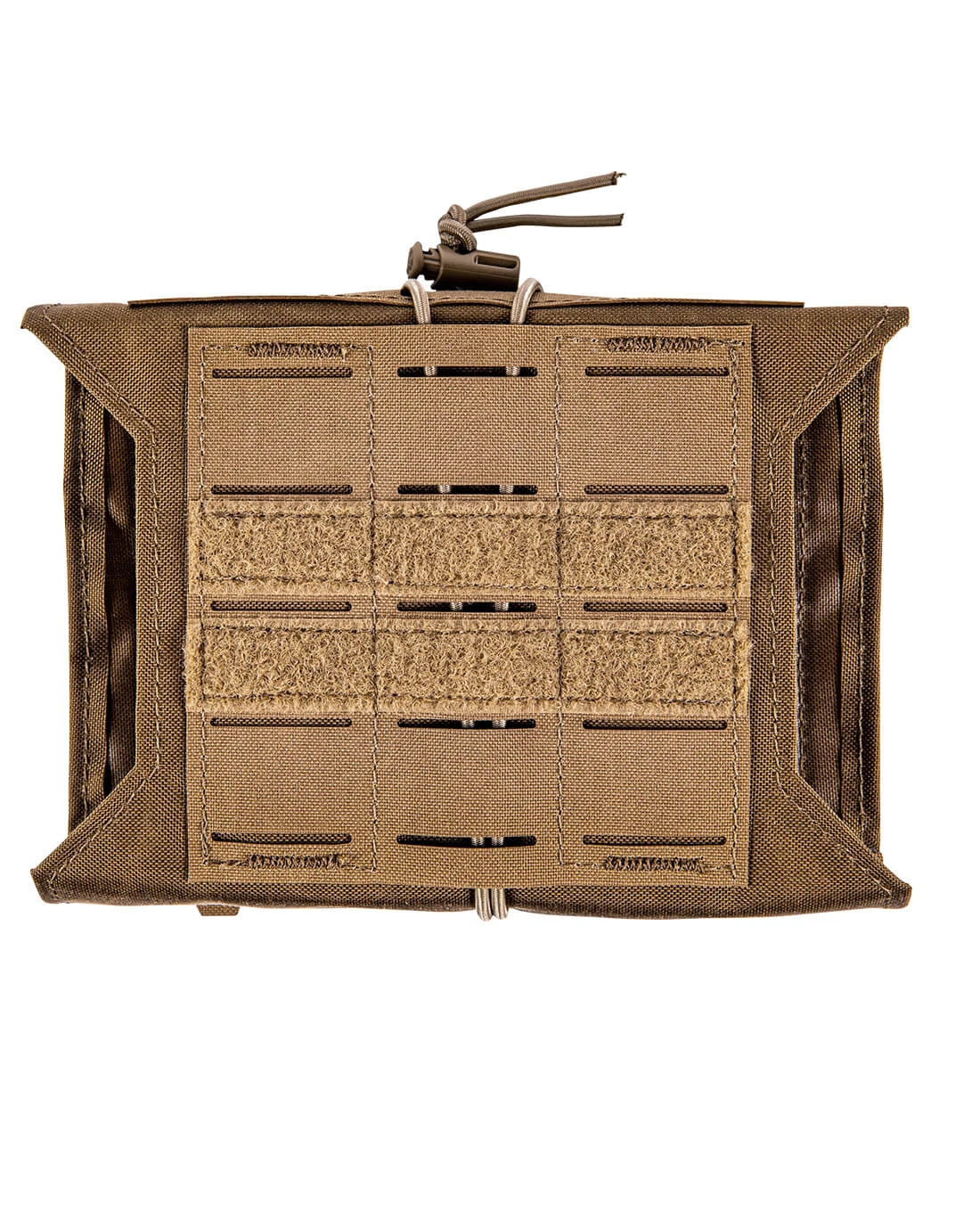 Auf Ober- und Vorderseite sorgen Lasercut M.O.L.L.E.-Schlaufen für modulare Erweiterungsmöglichkeiten und eine 10 x 5 cm große Flauschklettfläche erlaubt das einfache Anbringen von Kennzeichnungen und Medic Patches.