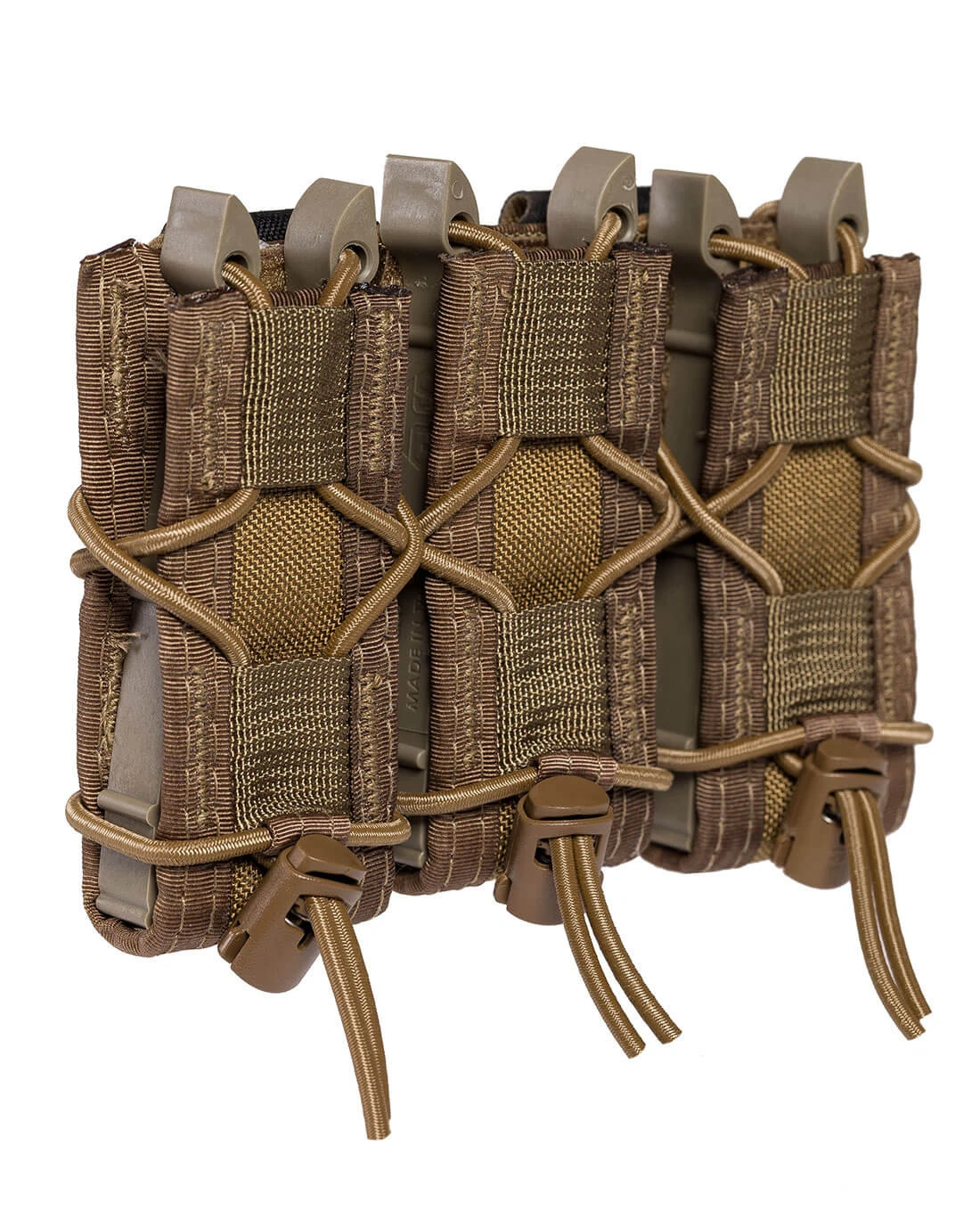 Die versatilen Magazintaschen der TACO Serie sind Spezialisten des Fast Deployment. Die Mag Pouches sind für ein schnelles Ziehen und Wiedereinstecken entwickelt und erfüllen die Erwartungen vollends dank Bungee-Cord Sicherung. Der Triple Pistol TACO Adaptable Belt Mount ist für drei Einzelmagazine gemacht, die nebeneinander eingeschoben werden und entweder am Gürtel oder mittels M.O.L.L.E.-System an Rucksack oder Plate Carrier festgemacht werden.