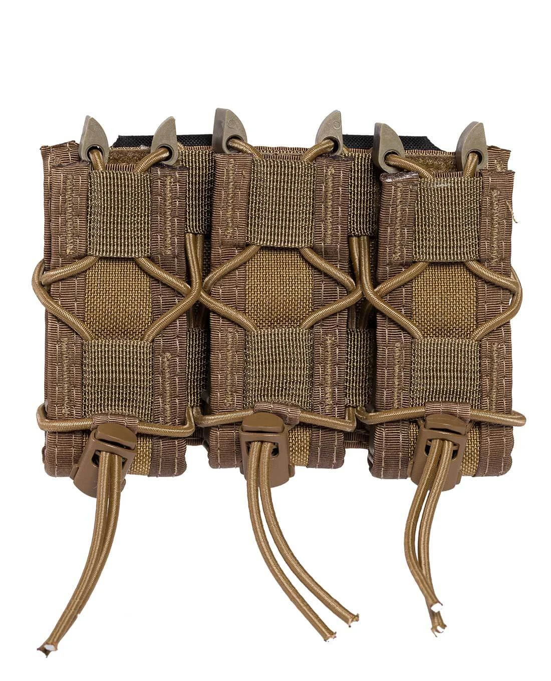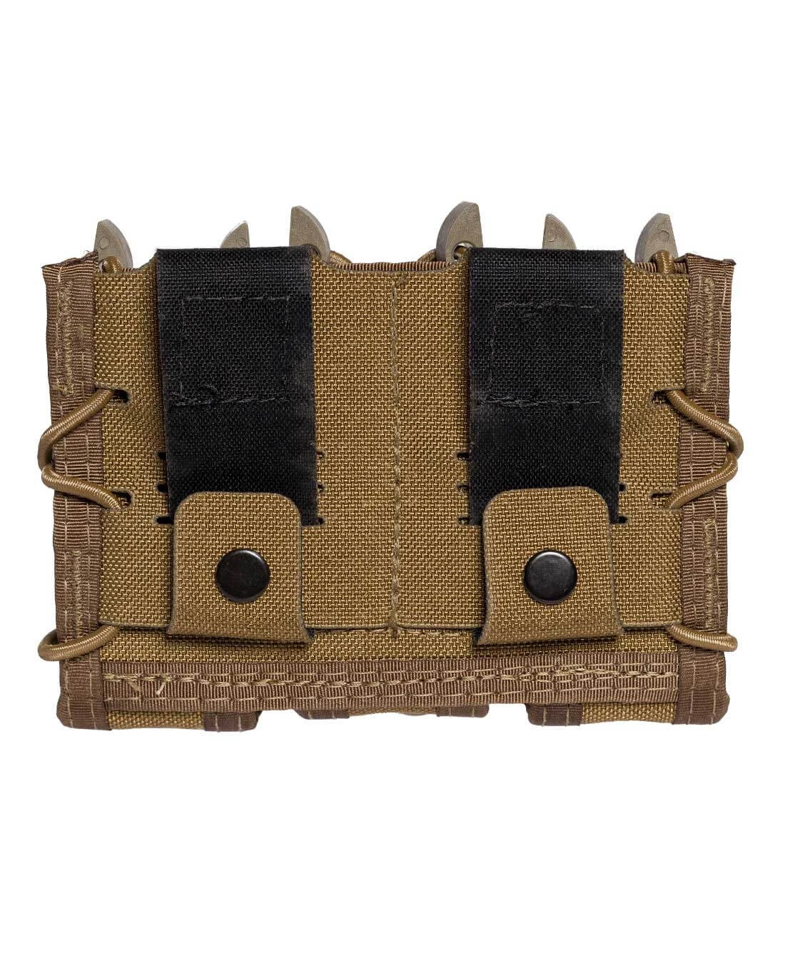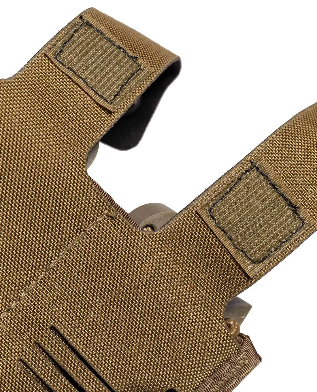 Aufgrund des 100% Nylon und der Komprimierung durch den Gummizug kann eine große Breite an Pistolen-Magazinen aufgenommen werden: 1911, HK 45, M9/Beretta 92, Glock, XD-Magazine werden alle sicher gehalten und bei Bedarf leicht und geräuschlos herausgezogen.
